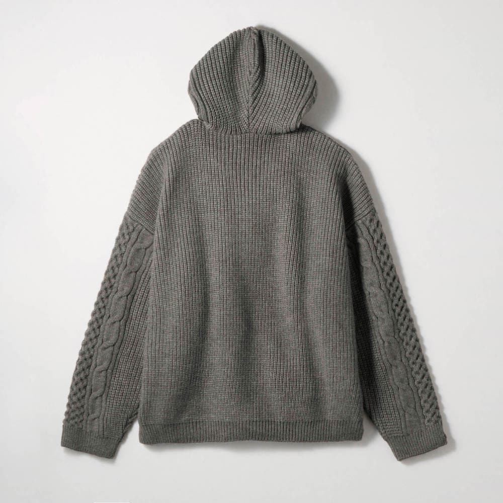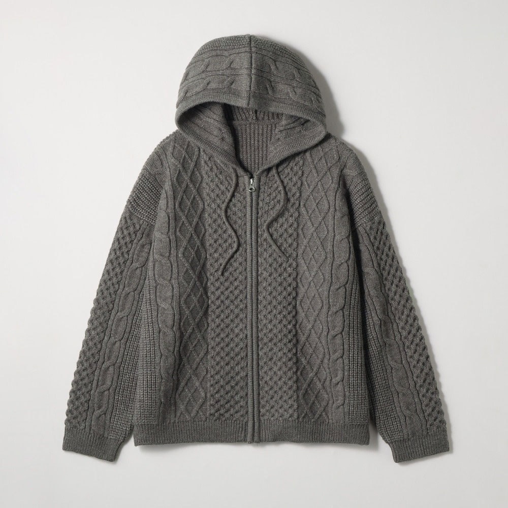 トレンドのアラン柄が高見えするジャケット風フーディ