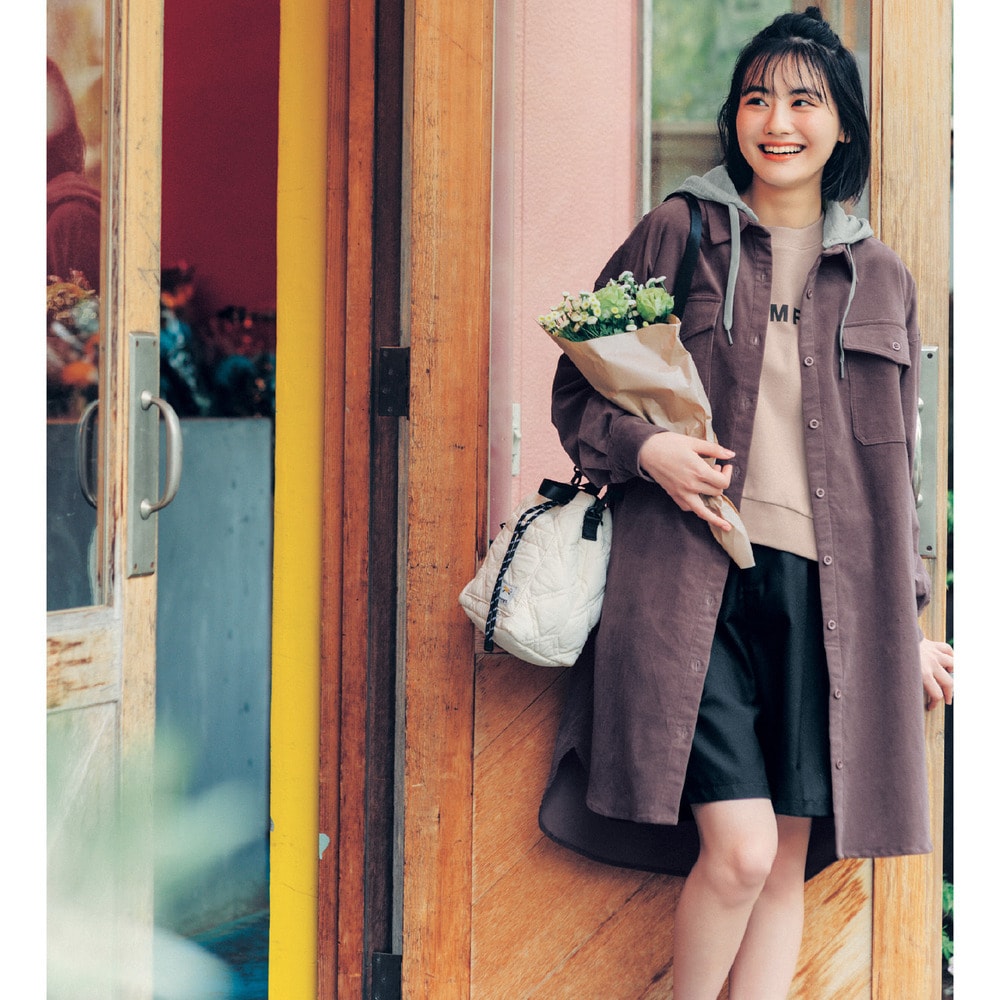 ●<織物>綿98%、ポリウレタン2%(ストレッチコーデュロイ)、フード:ポリエステル65%、綿35%(ミニ裏毛)