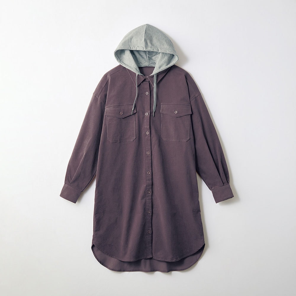 取り外しできるフード付き2WAYコーデュロイシャツワンピース 【子供服 長袖】