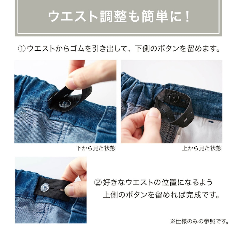 ・ウエストはアジャスターゴム付きでサイズ調節可能