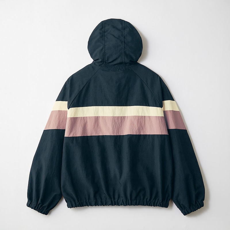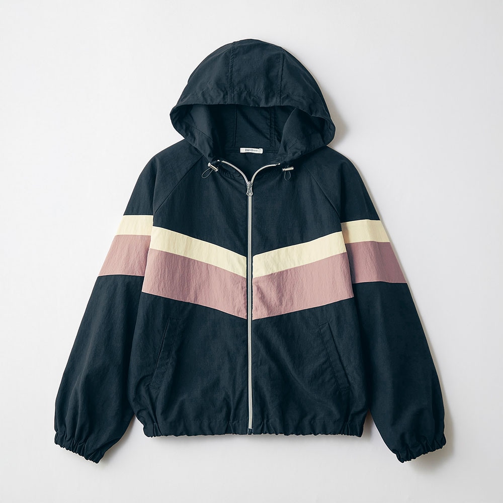 軽やかに羽織れるシャカ素材の切替えパーカ