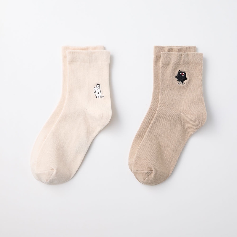 ムーミンのワンポイント刺しゅうにときめく2足組クルーソックス