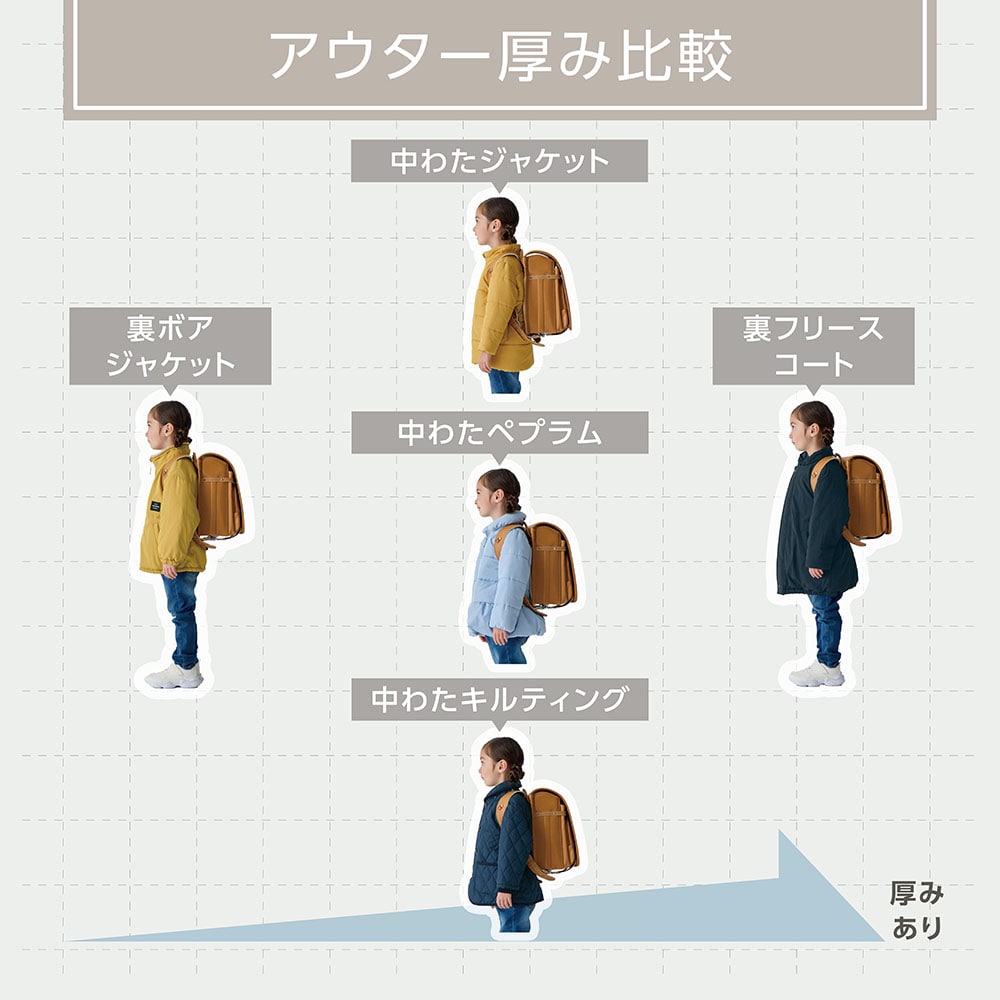 ただ厚いコートだと、ランドセルが背負いにくそうでしたが、こちらはもこもこしすぎず、着やすそうです