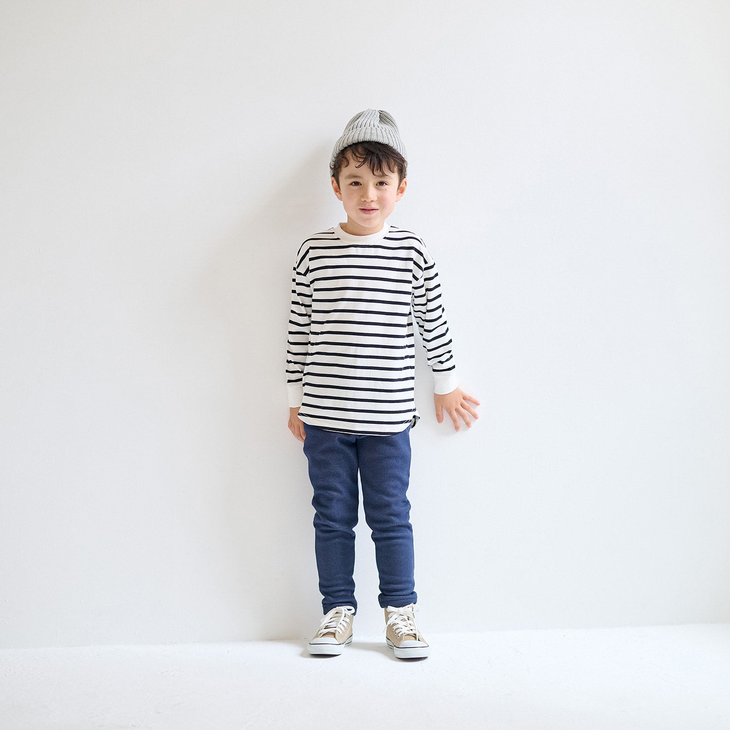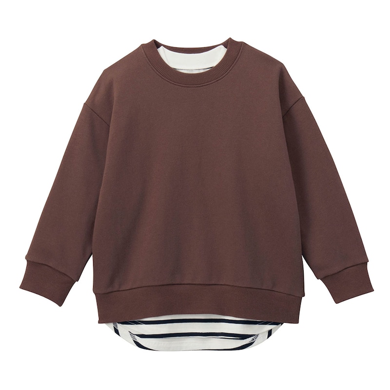 今の時期だとレイヤードさせてる。おしゃれ。130センチがピッタリだけどあえて140買いましたが腕はまくれば着れる。丈もお腹隠れるから安心。