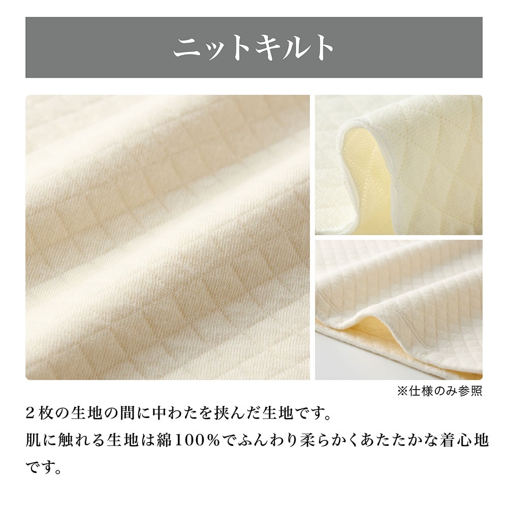 ●<カットソー>表側・裏側:綿100%、中わた:ポリエステル100%(ニットキルト)、リブ部分:<カットソー>綿95%、ポリウレタン5%(リブ)