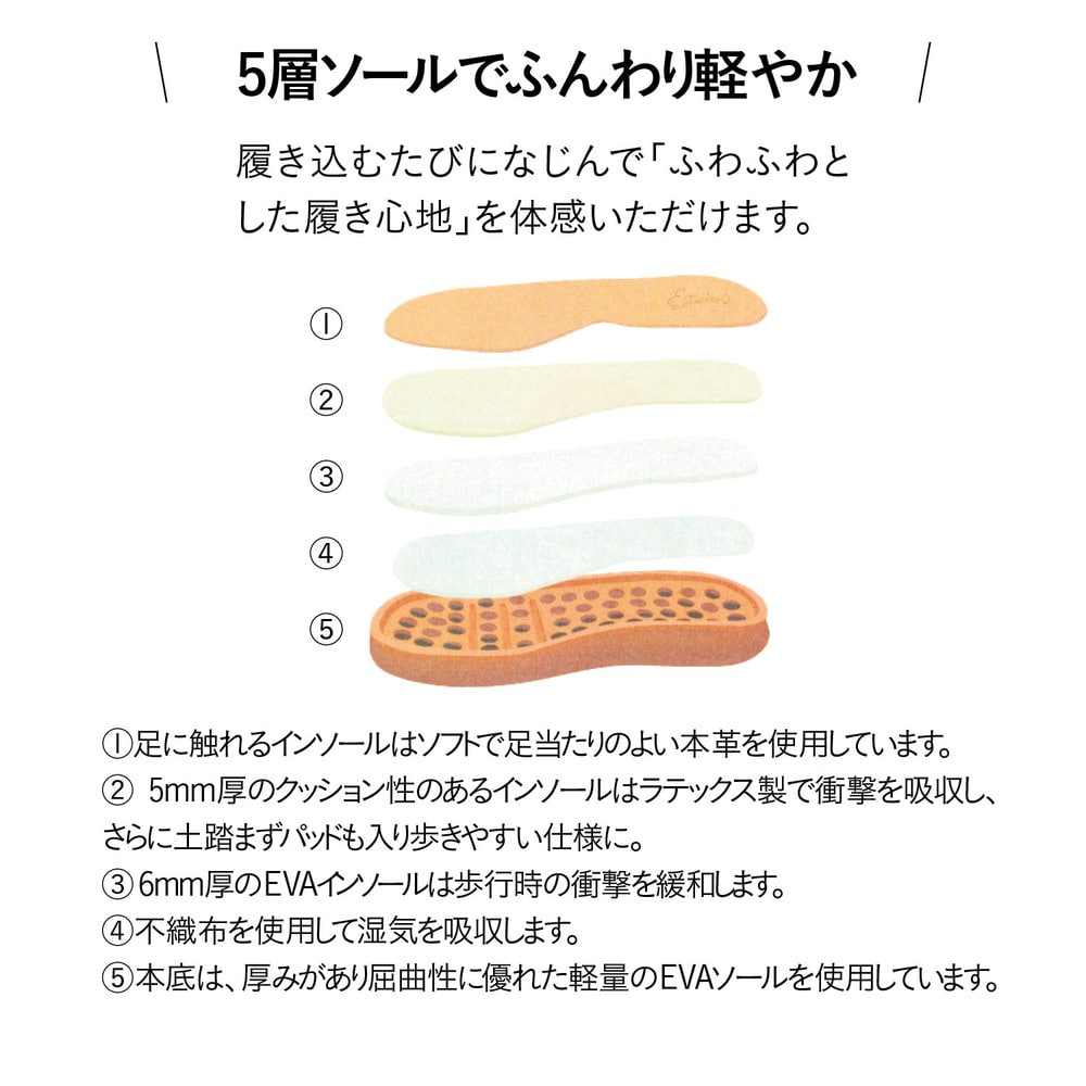 良い商品とはわかっていましたが、私にとっては高価な商品でなかなか手が出せませんでした。長年憧れていた商品だったのですが、セールになったので思い切って購入しました。セールになっても勇気のいる決断でしたが、購入して正解でした。履きやすい!かかとがついてるのも本当に良かったです。届いたその日からこればかり履いています。他のエスタシオンのシリーズもチェックします。