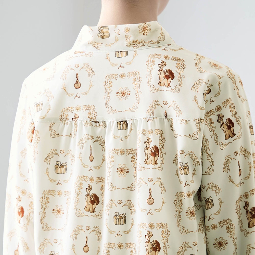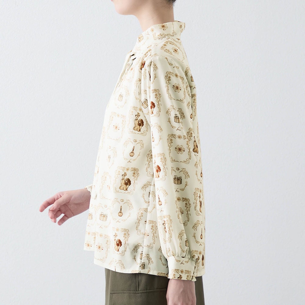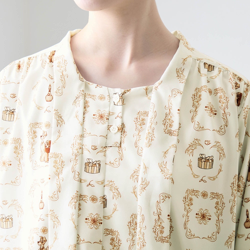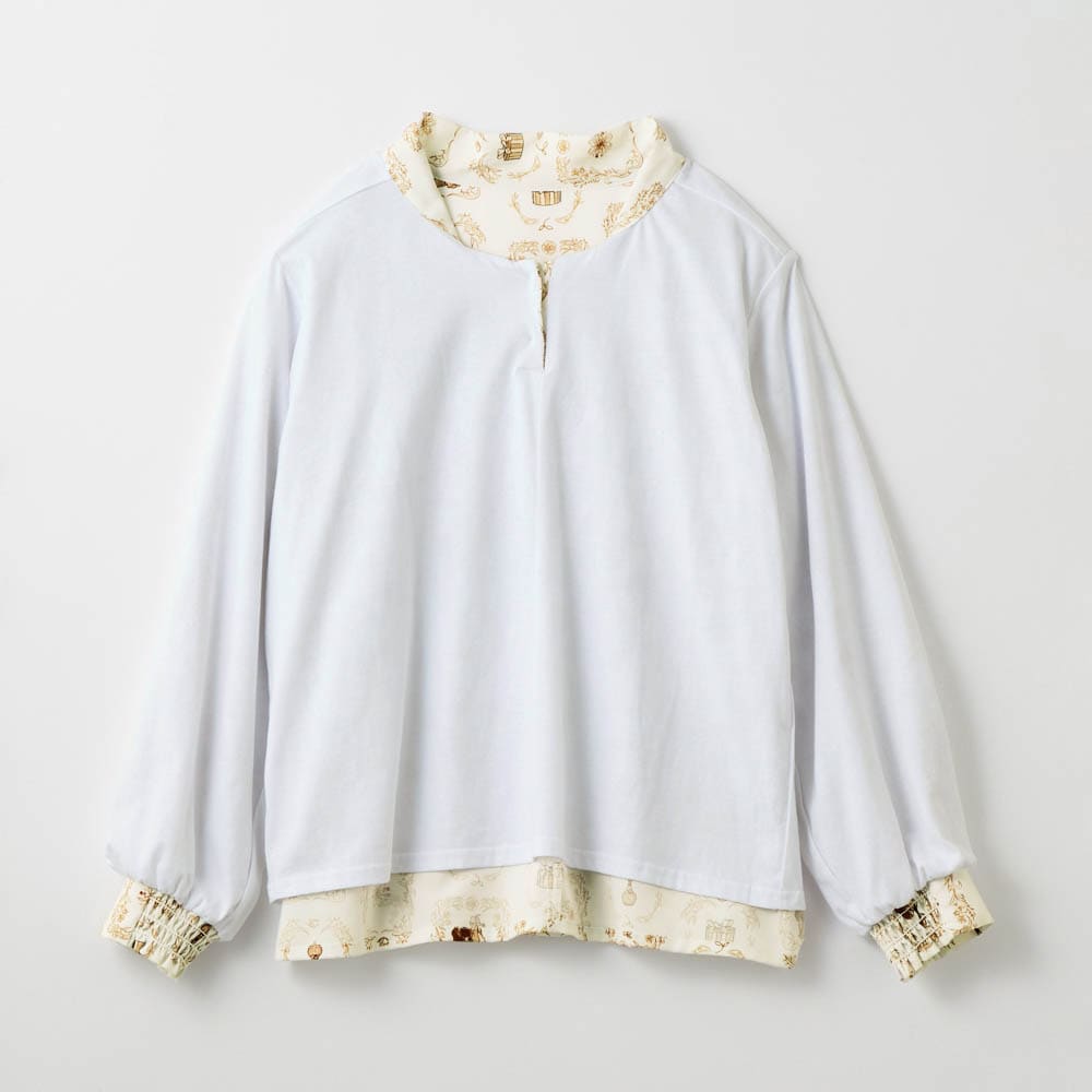 柄が凝っていてワンポイントのキャラクターが可愛いです。素材はイマイチでした。袖部分は伸びてきそうなゴムで、首元のボタンは白のシンプルなプラのボタンです。それから裏地が着膨れして見えるような気がします。