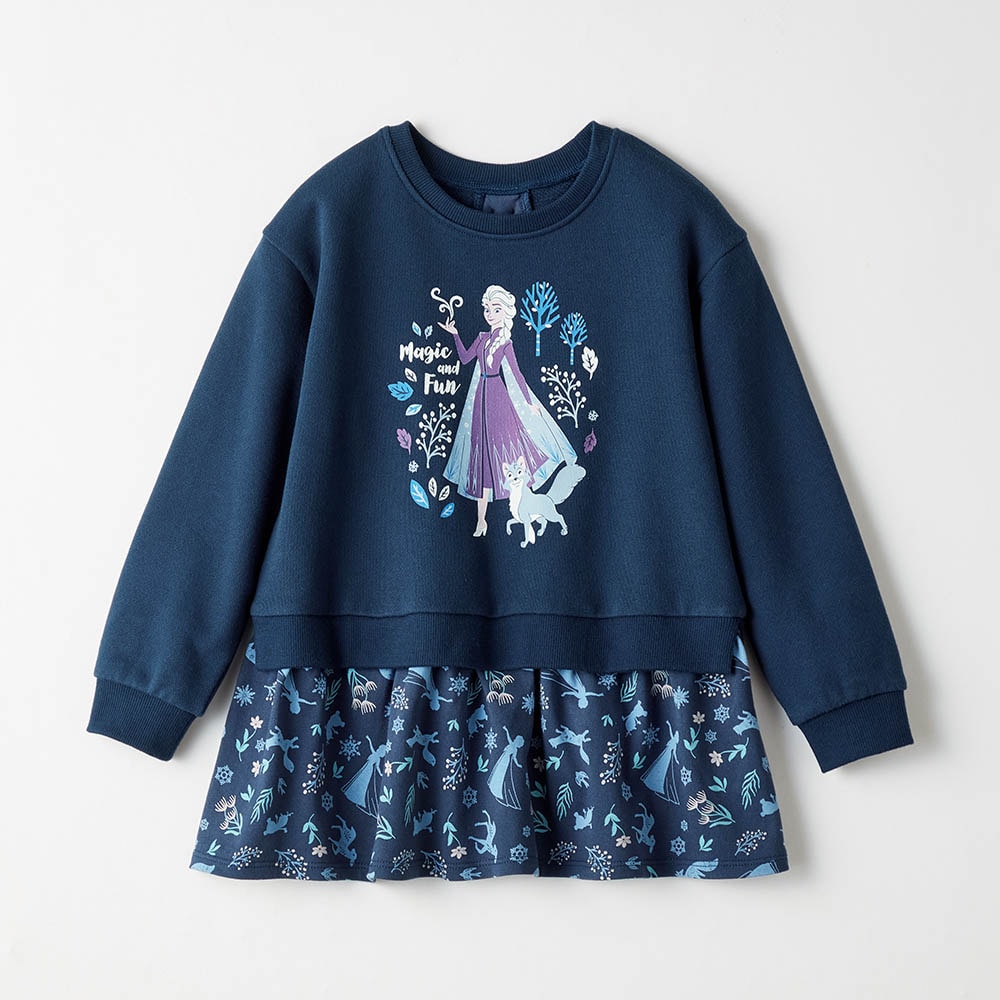 ・総柄トップスと裏毛プルオーバーの重ね着風デザイン