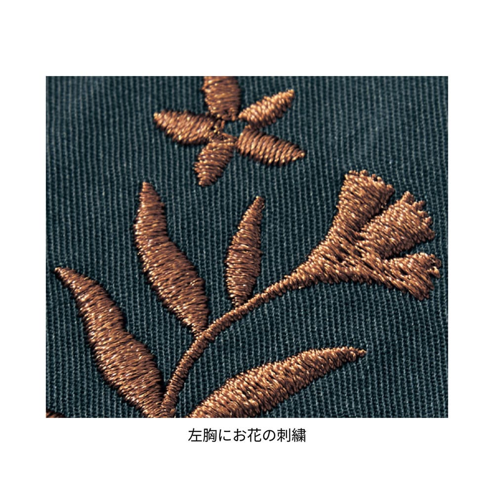 ・大人っぽいダークカーキカラーに刺繍あしらいがポイント