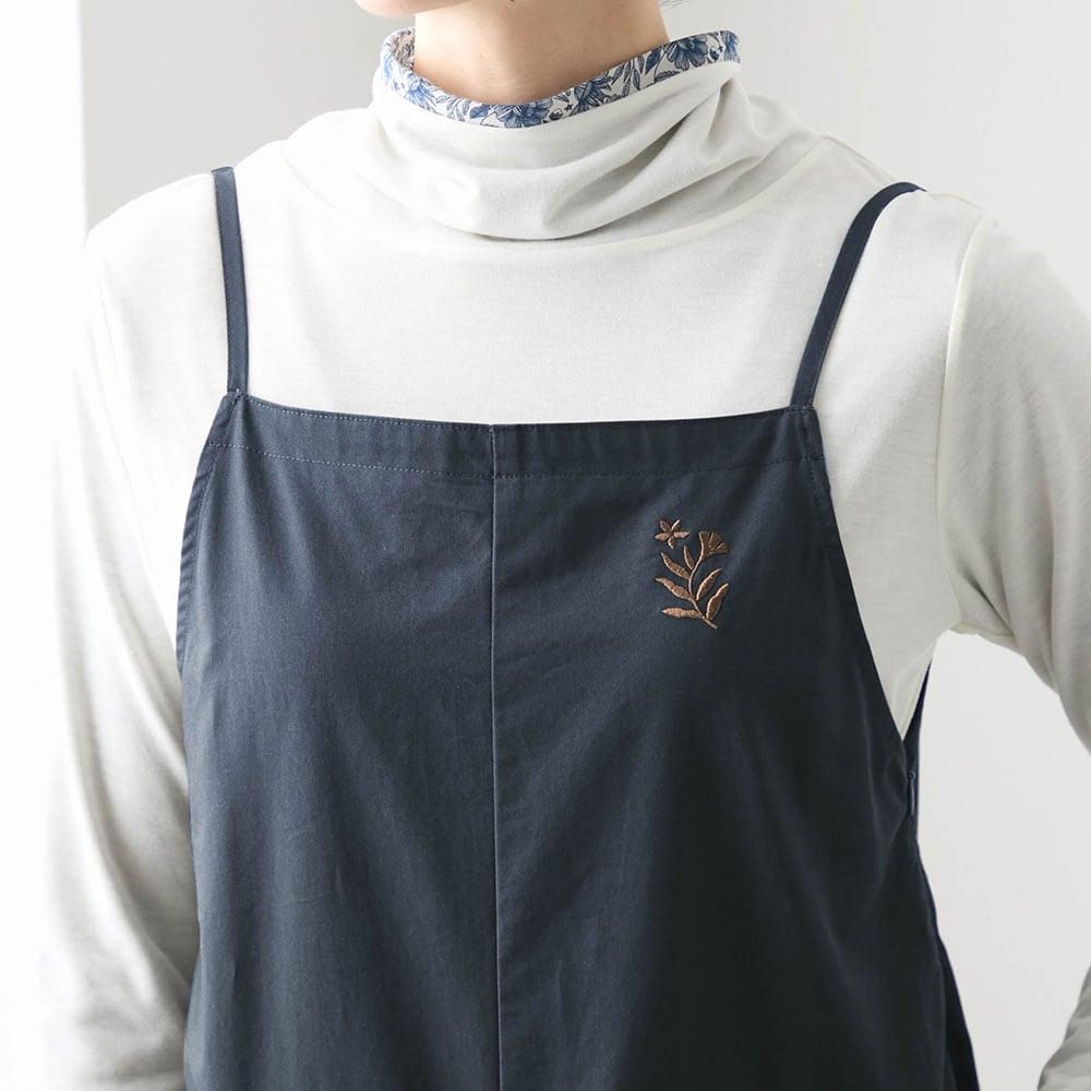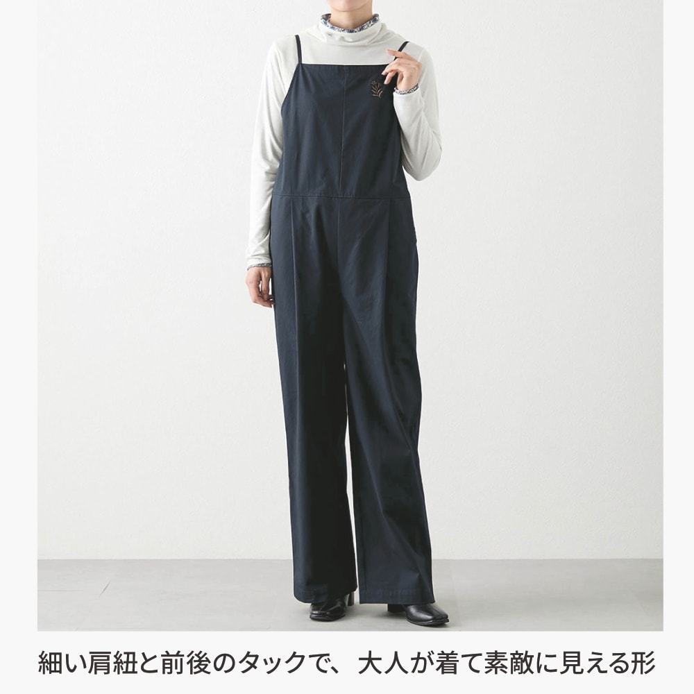 刺繍がかわいい大人のサロペット/カーネーション 「ミニラボ」