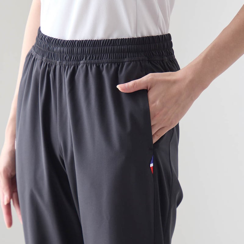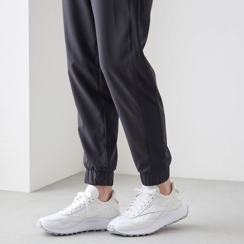 ・裾にゴムを搭載した、足の動きを邪魔しないジョガーシルエット