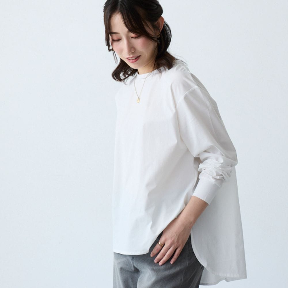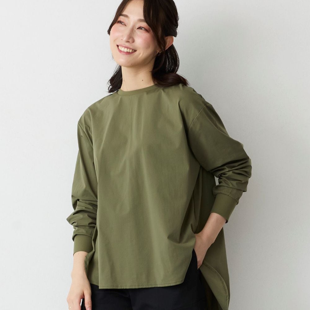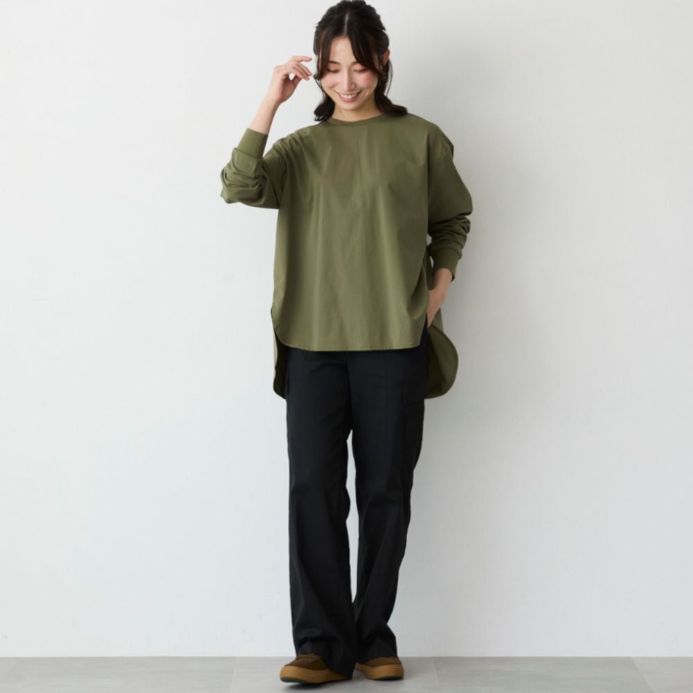 ・着丈長めの長袖Tシャツでさりげなく体型カバーにも