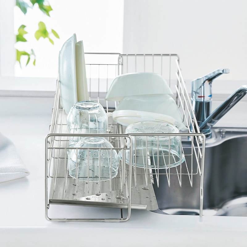 幅を出したりしまったり出来るし、カウンターから籠が見えないので良いです。シンク内の作業スペースも広くなり購入して良かったと感じています。