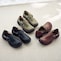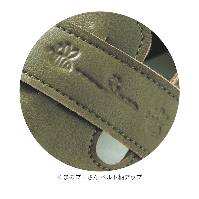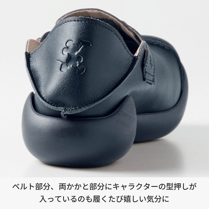 ・かかとと甲ベルトにキャタクターモチーフの型押しをデザイン