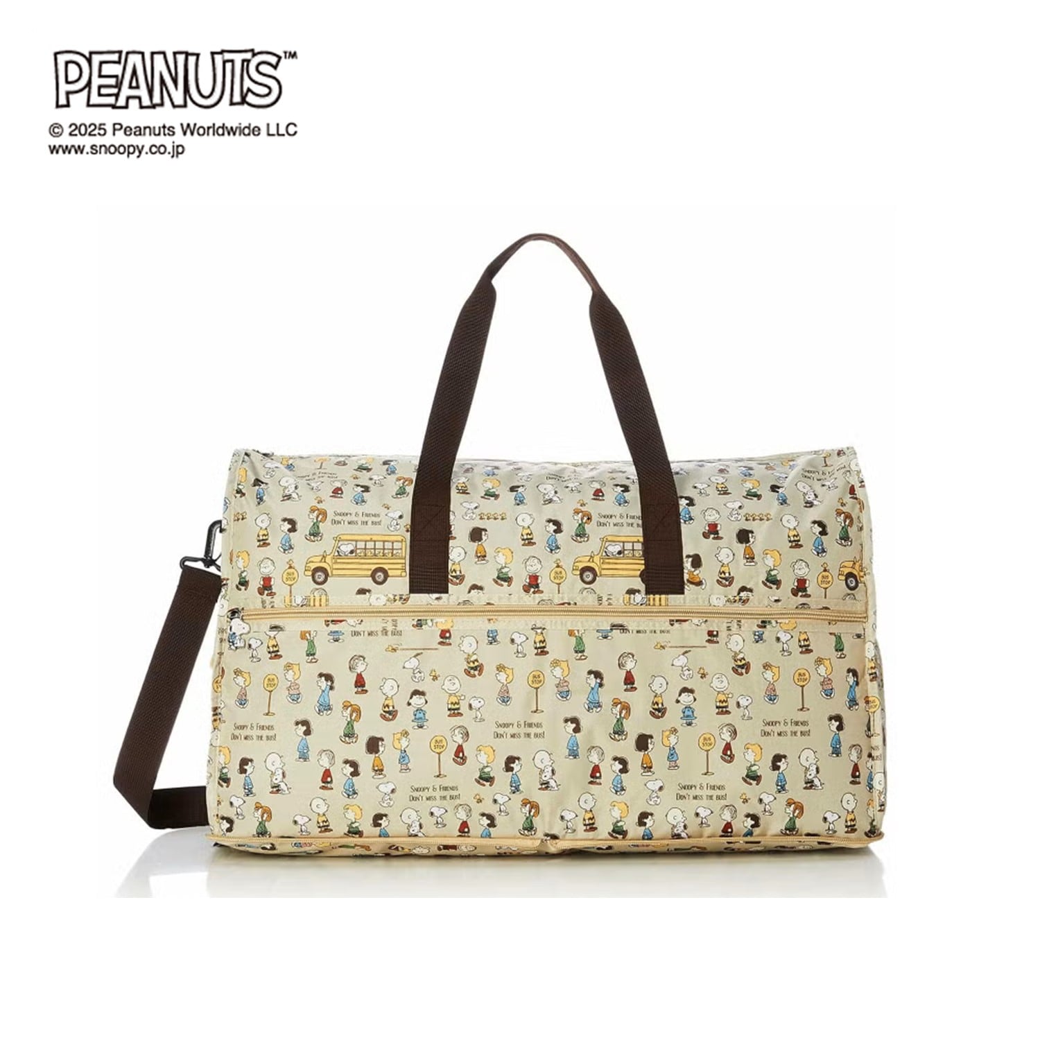 使わない時はコンパクトに畳めるのが良いと思い購入しました。広げてみると思うより少し大きく、いっぱいに詰めると網棚などに上げるのが大変そうですが。出来ればスヌーピーのファスナー引き手はバッグの明け閉めの方に付けてほしかった。刺しゅうのワンポイントも床に付いてしまう所以外に入れてくれたら嬉しいです。そして畳んだ時にファスナーを閉めようとしたら生地を何度も噛んで大変でした。折りたたんだとしてもファスナーを閉めないでおこうと思いました。畳んで巾着バッグとかにしまえるとかの方が良かったかも。