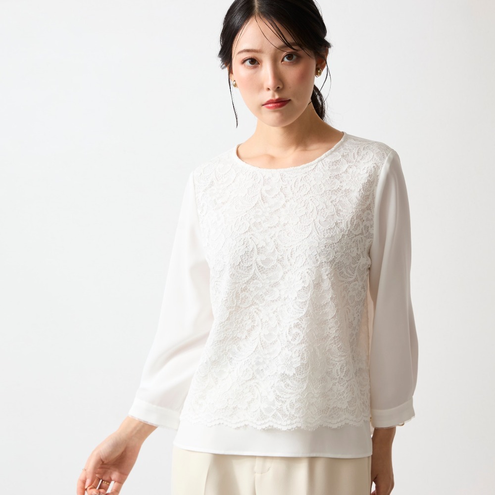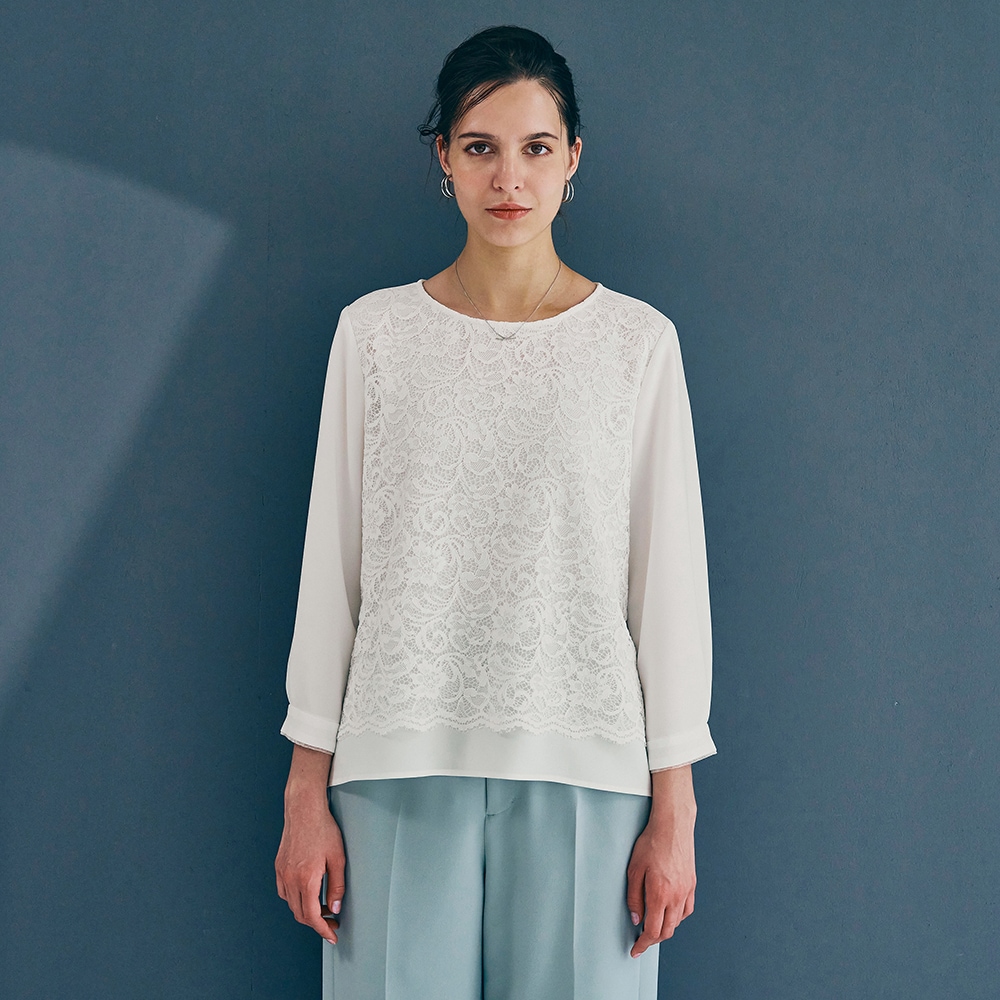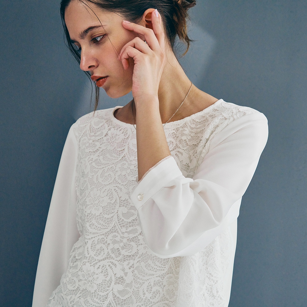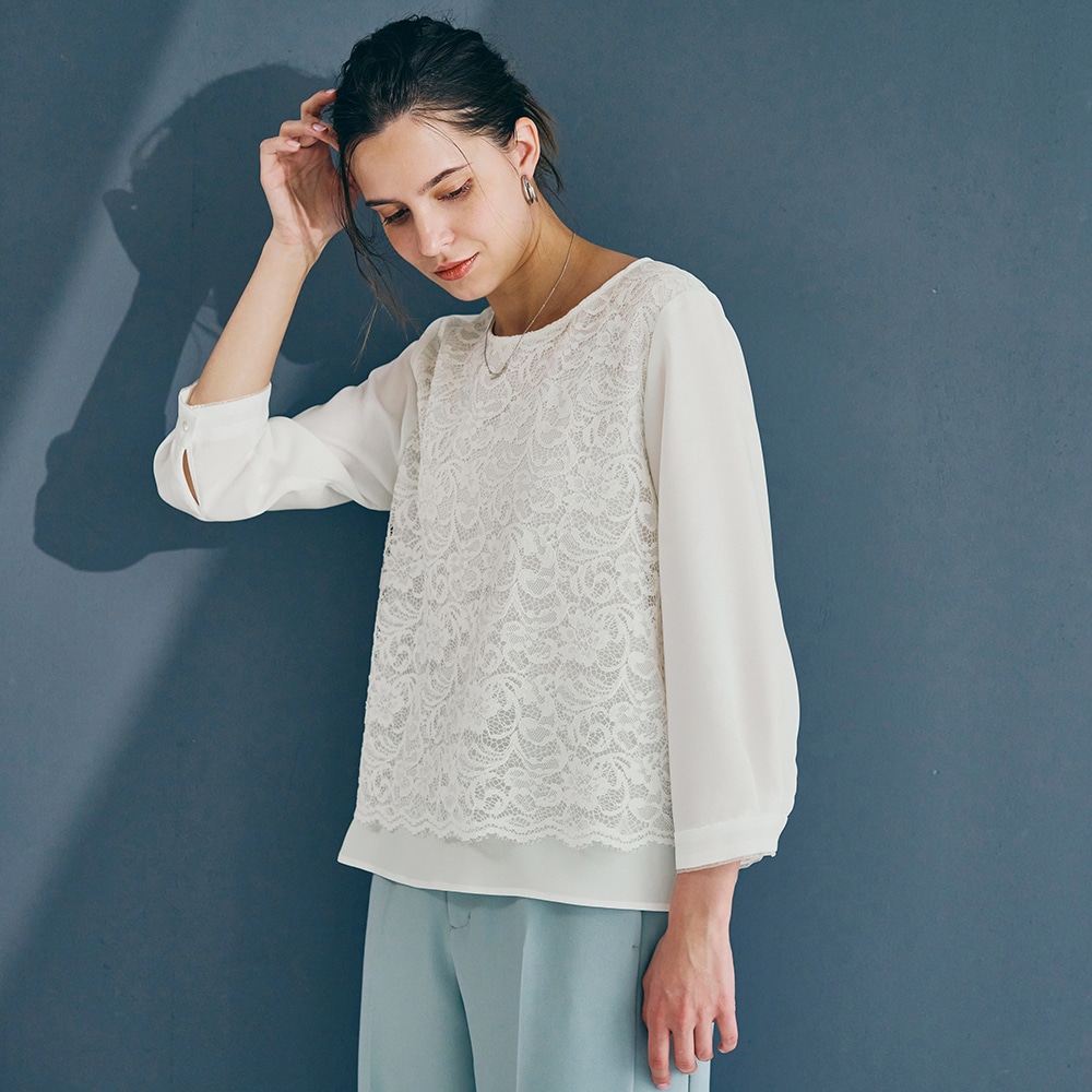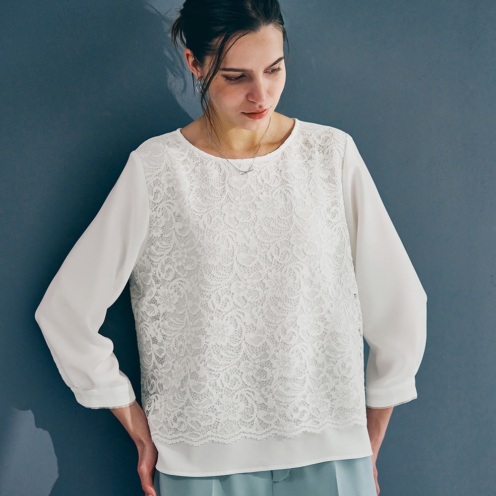 <ジャケットに映える。印象をつくるブラウス>立体的なレースでクリーンに表情感をプラス
