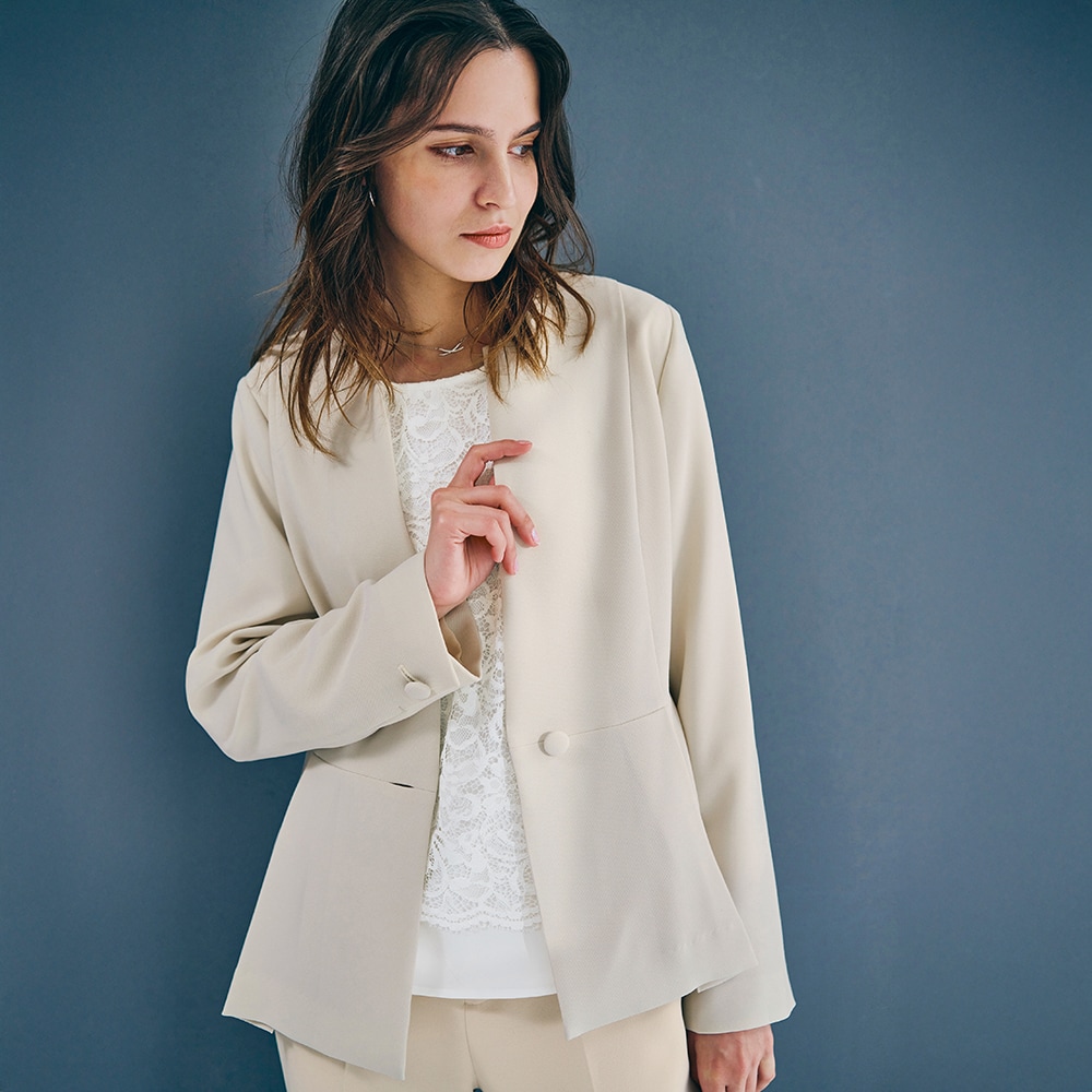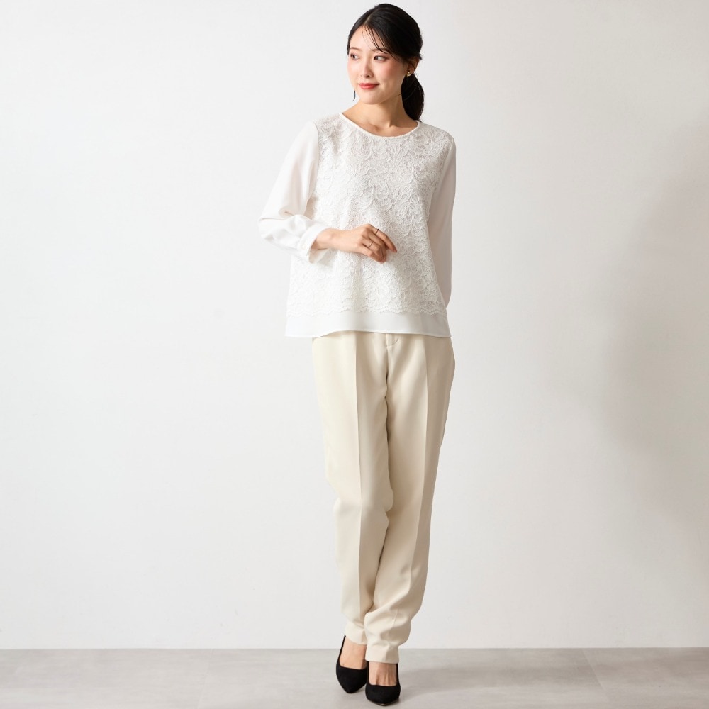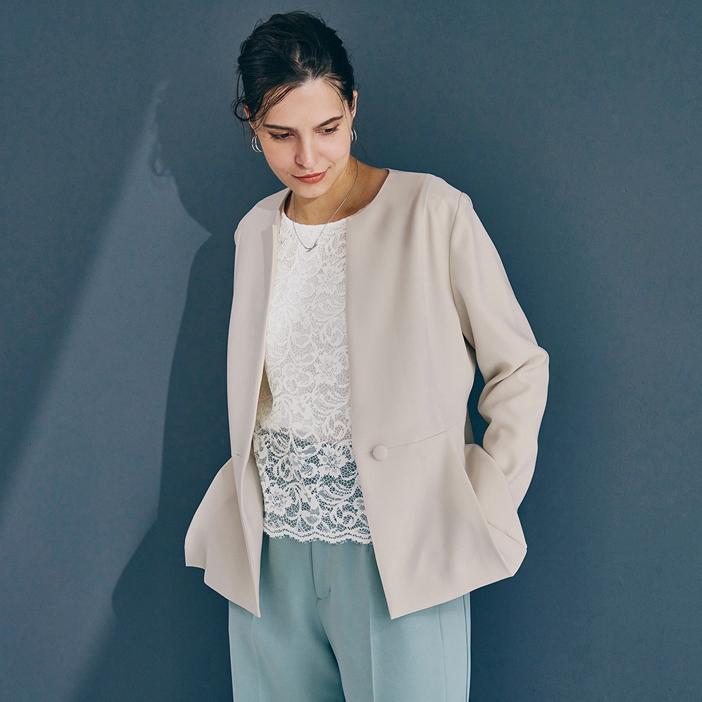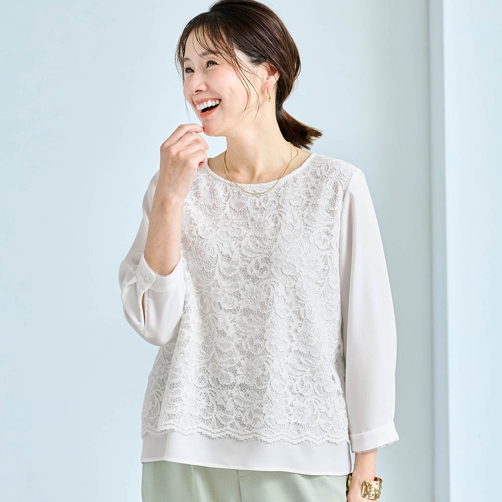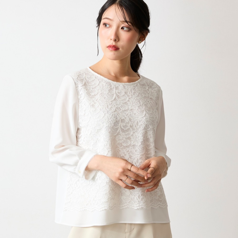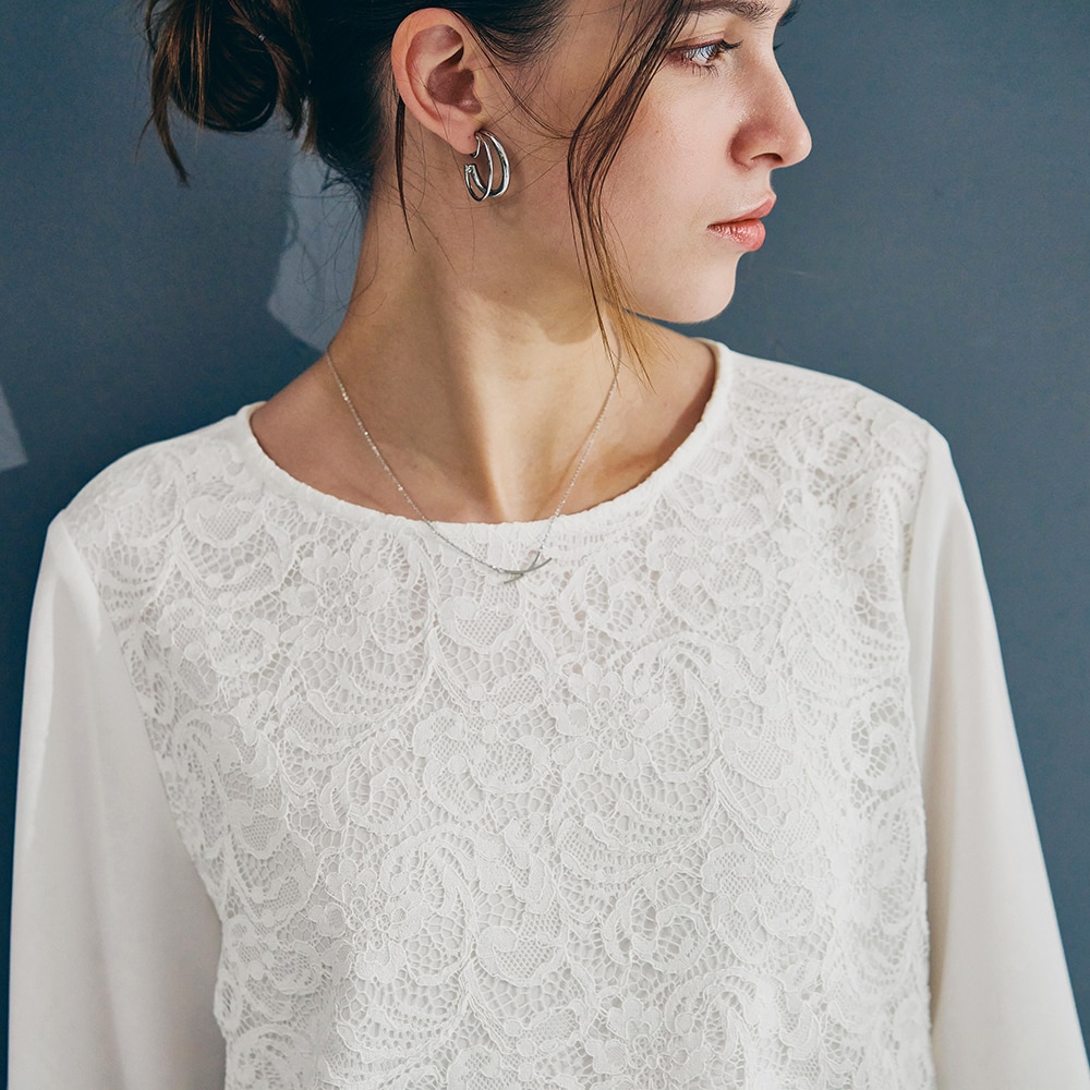 <ジャケットに映える。印象をつくるブラウス>立体的なレースでクリーンに表情感をプラス