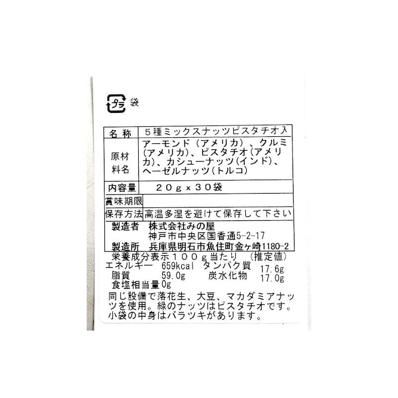 ナッツというと、結構ピーナッツが多く入っている物が多いですが、「ピスタチオ、アーモンド、クルミ、カシューナッツ、ヘーゼルナッツ」だけで1袋食べごたえがあってとても美味しかったです。個包装なので保存にも良いです。欲を言えば、もう少し価格が安かったらな~。と思います。