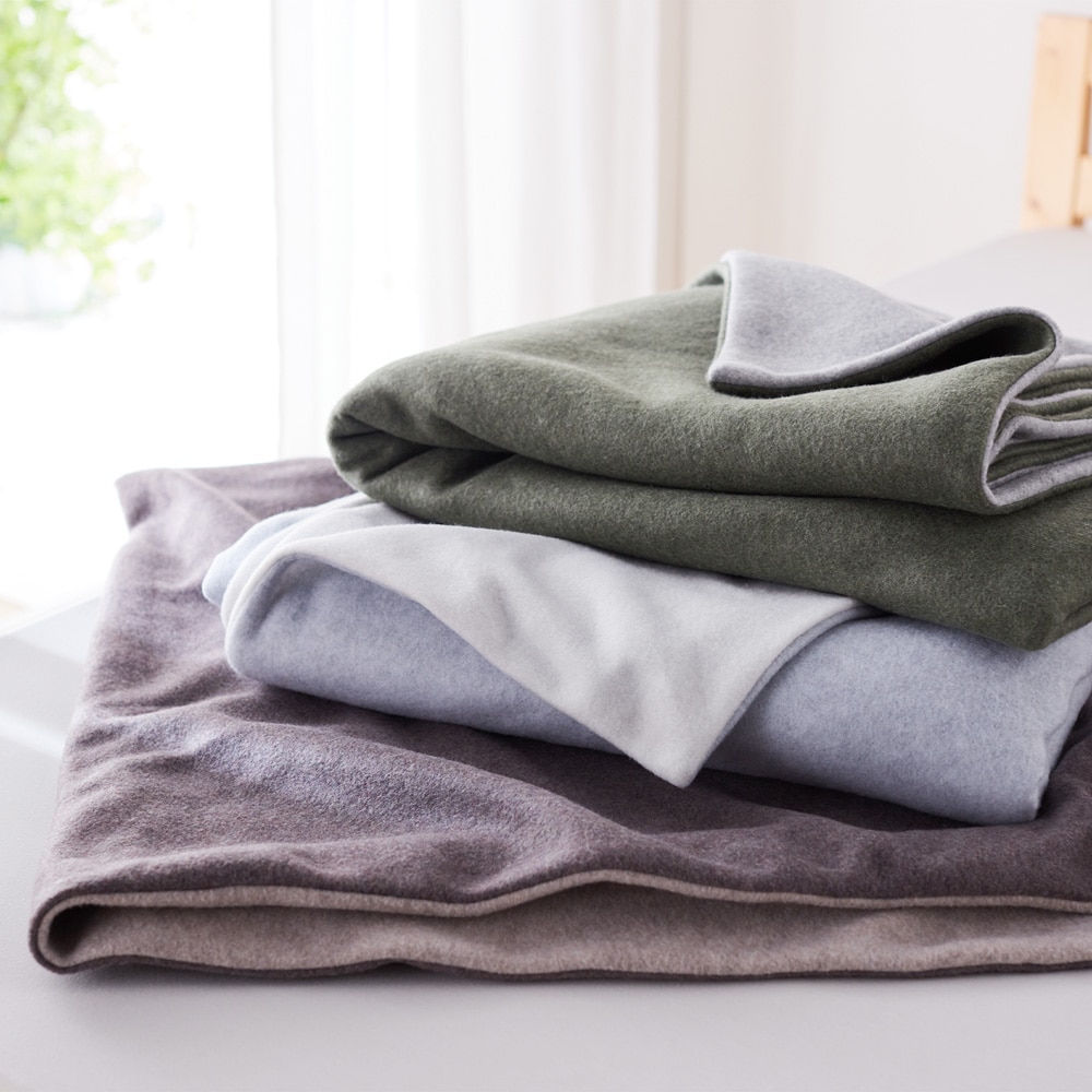 自分で使ってみて、とても暖かく寝られたので主人と子供のベッド用に購入しました。2人とも気に入ってくれたようです。グレー系にしましたが、薄い水色のような色合いで良い色だなと思いました。裏返すと違う色になるのも良いです。