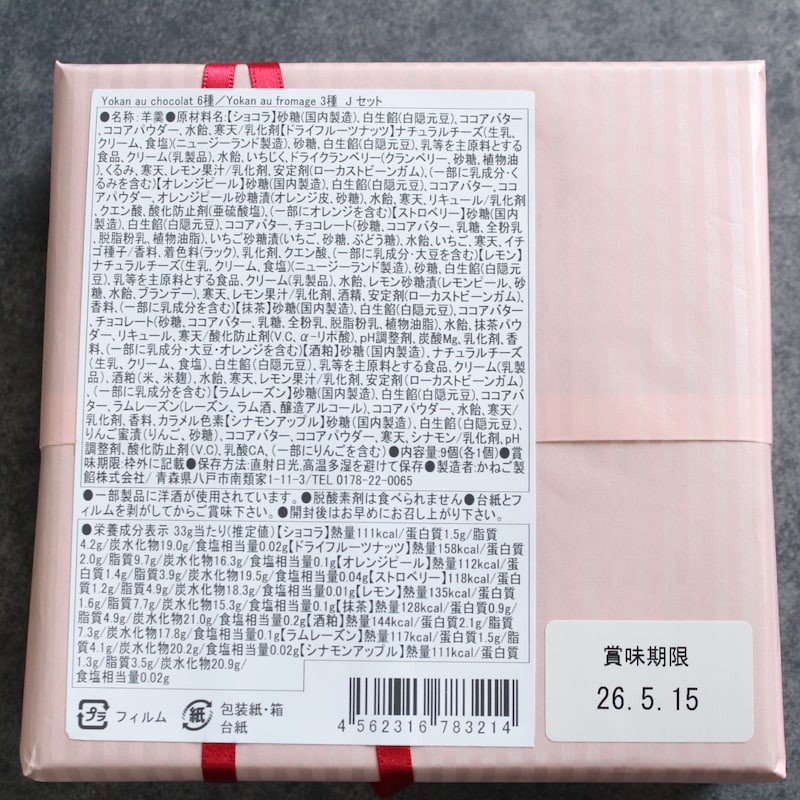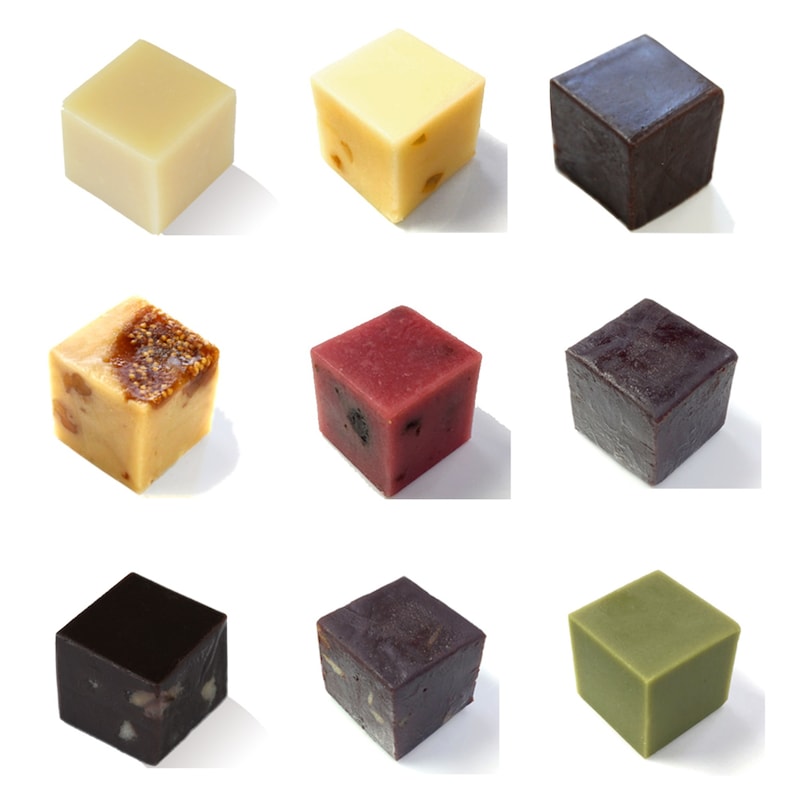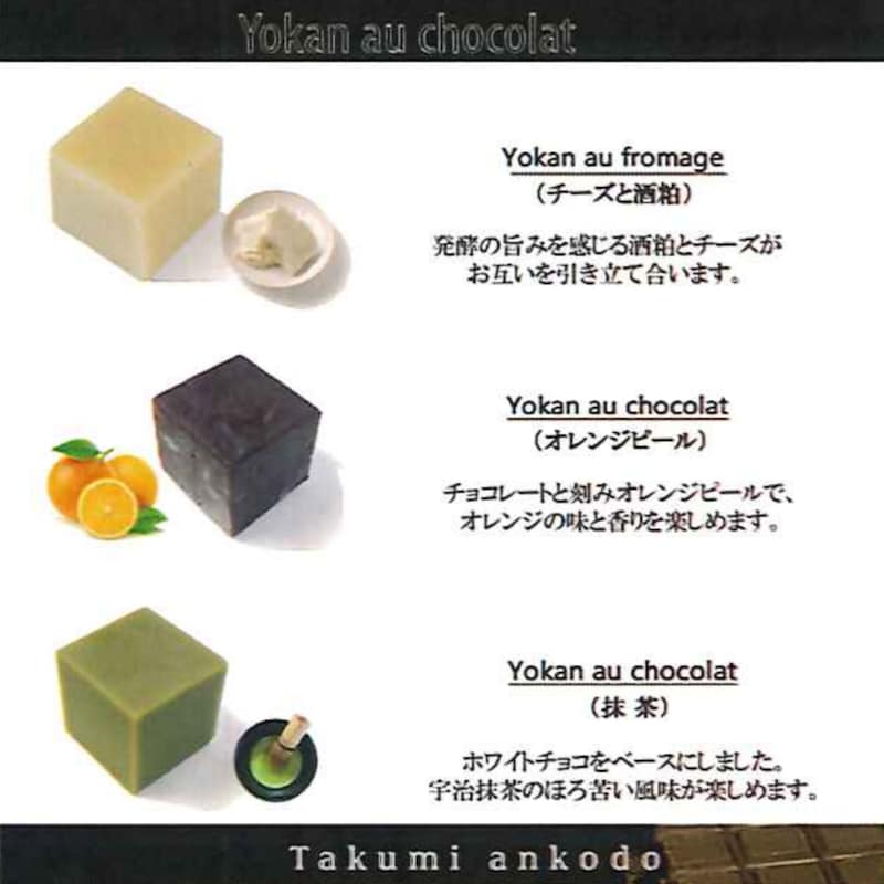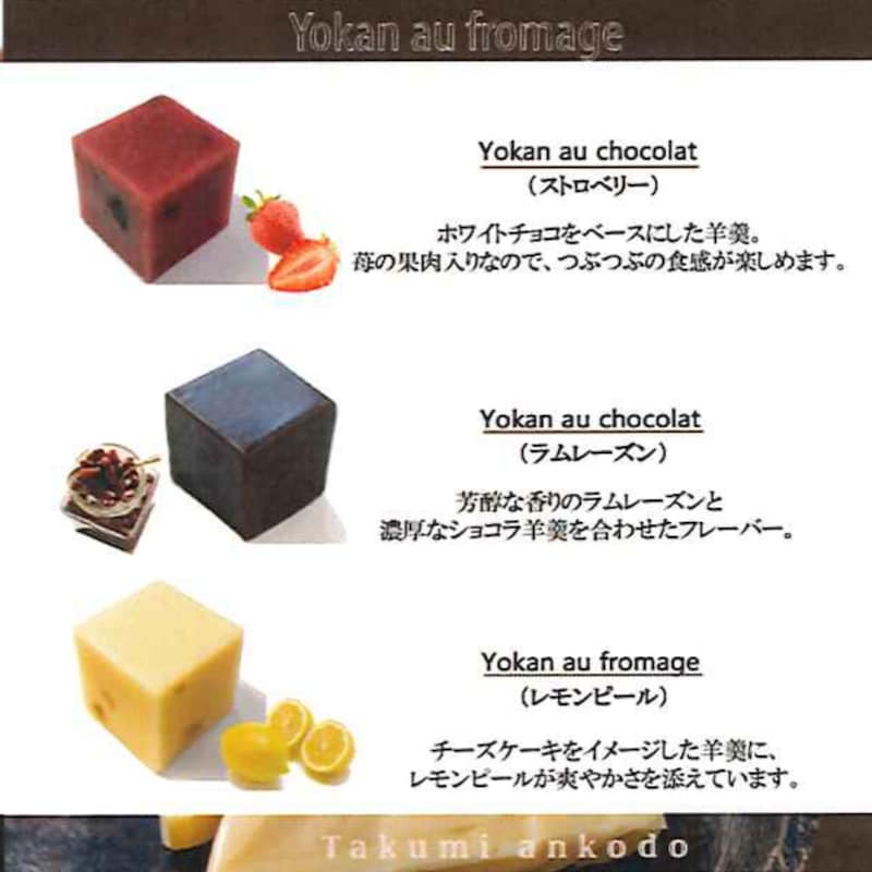 ●キューブ羊羹(ショコラ・オレンジピール・抹茶・ストロベリー・チーズと酒粕・ドライフルーツ ナッツ・シナモンアップル・ラムレーズン・レモンピール:各33g×1個)