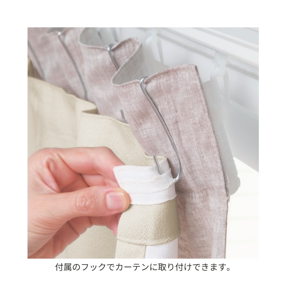 カーテンレールに簡単につけられました。上品な画のタッチでとても素敵です。生地はサラサラ感があってしっかりしています。買い足しします。