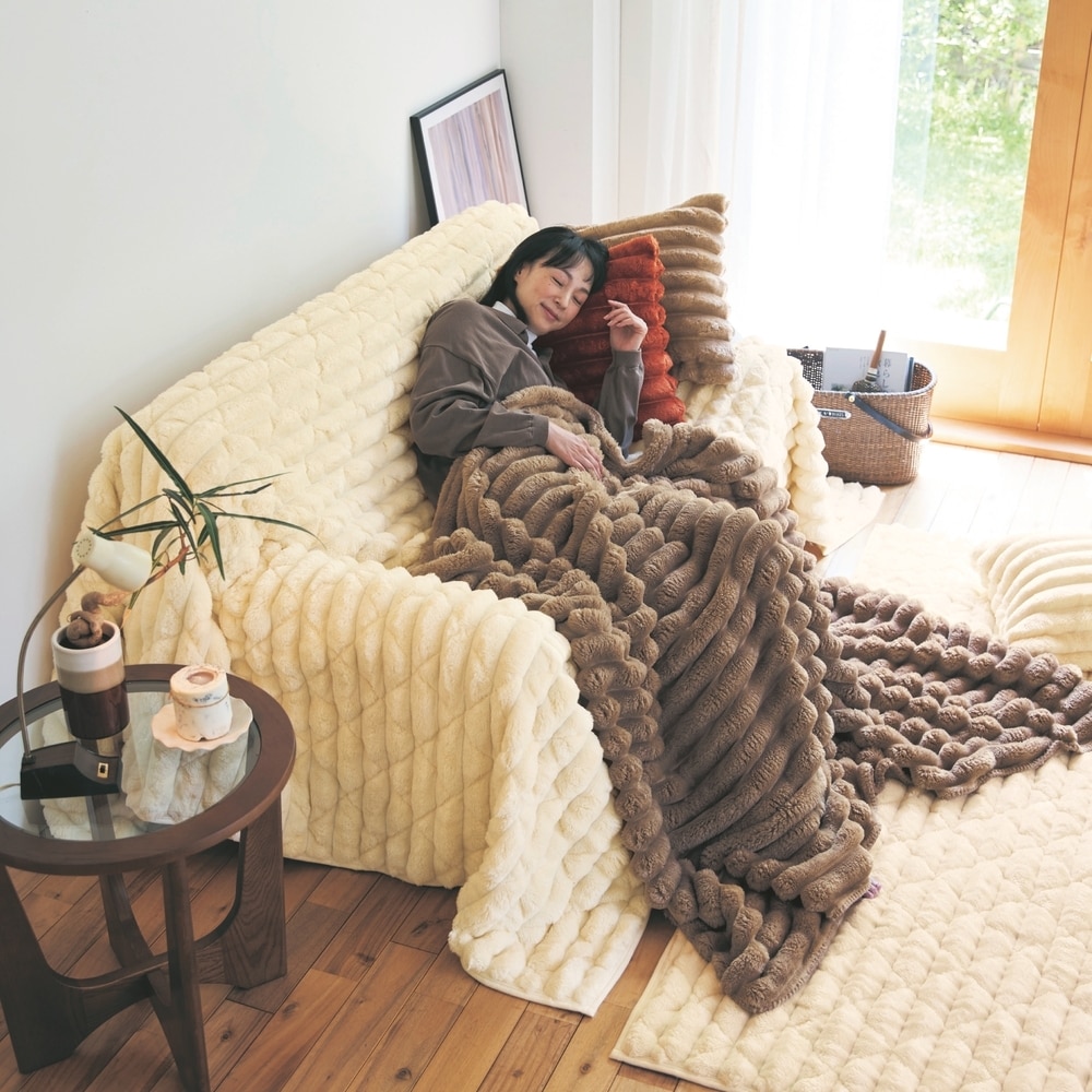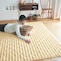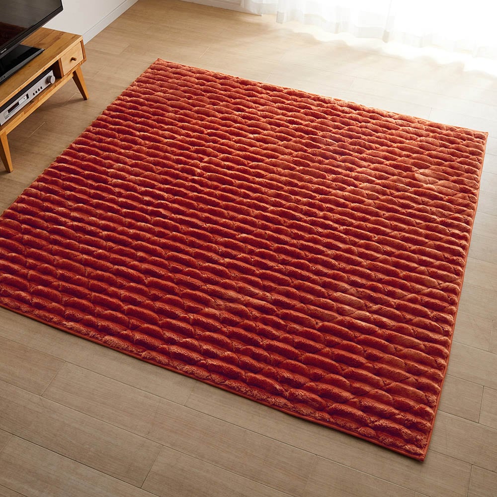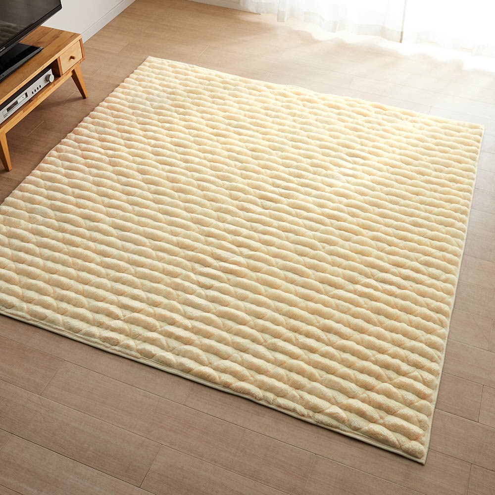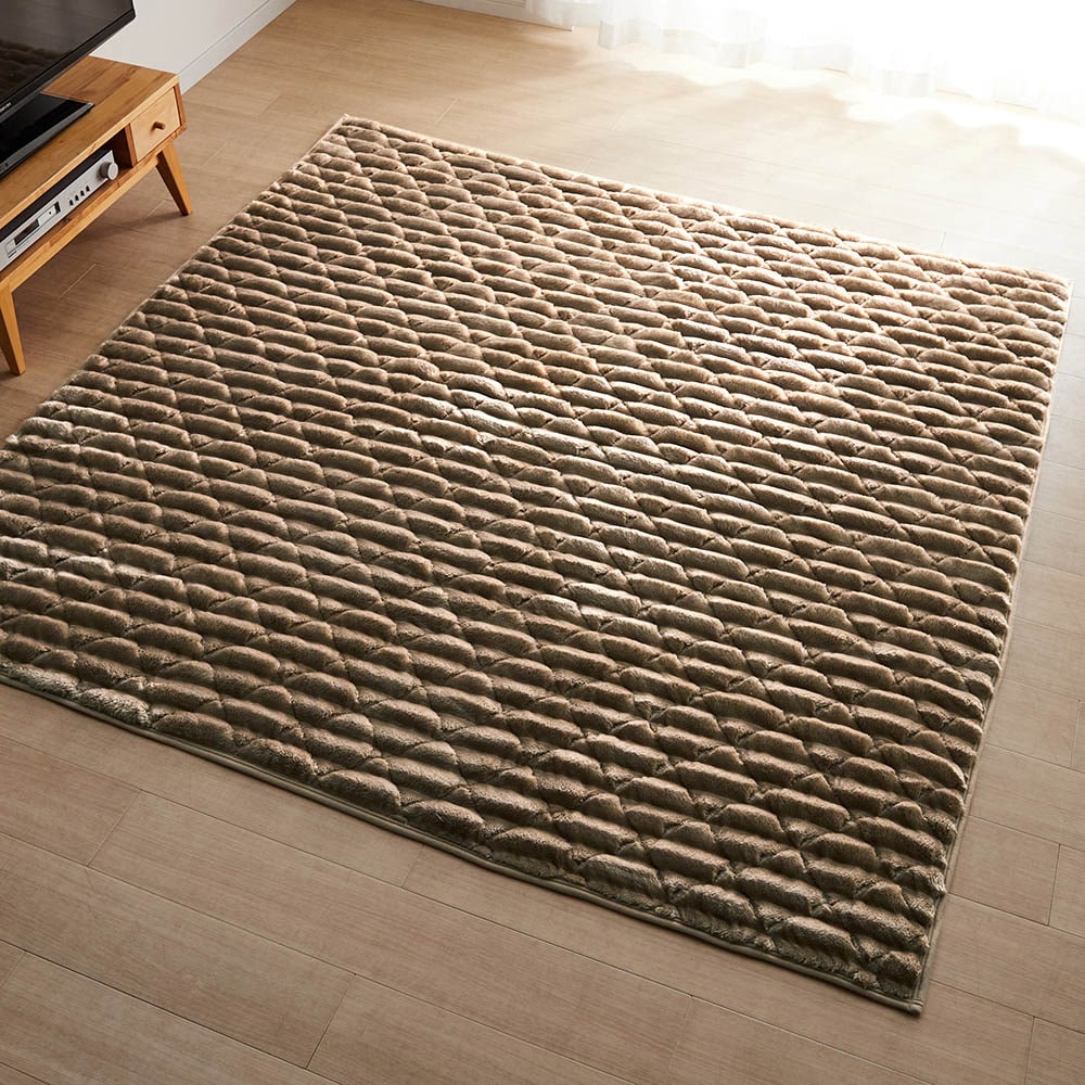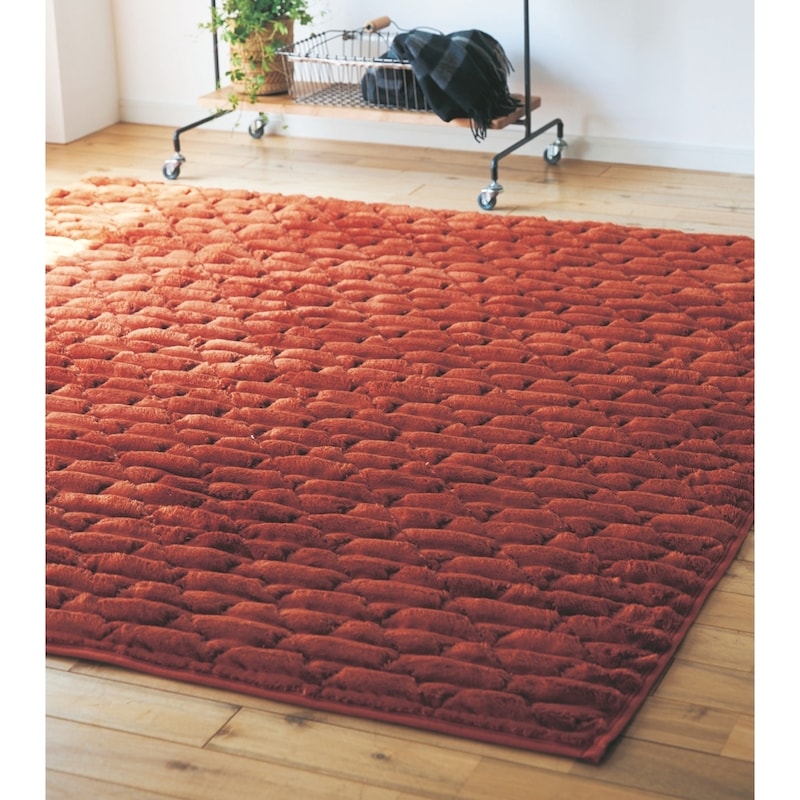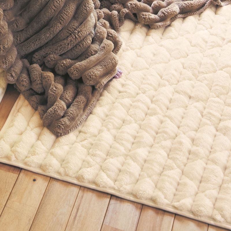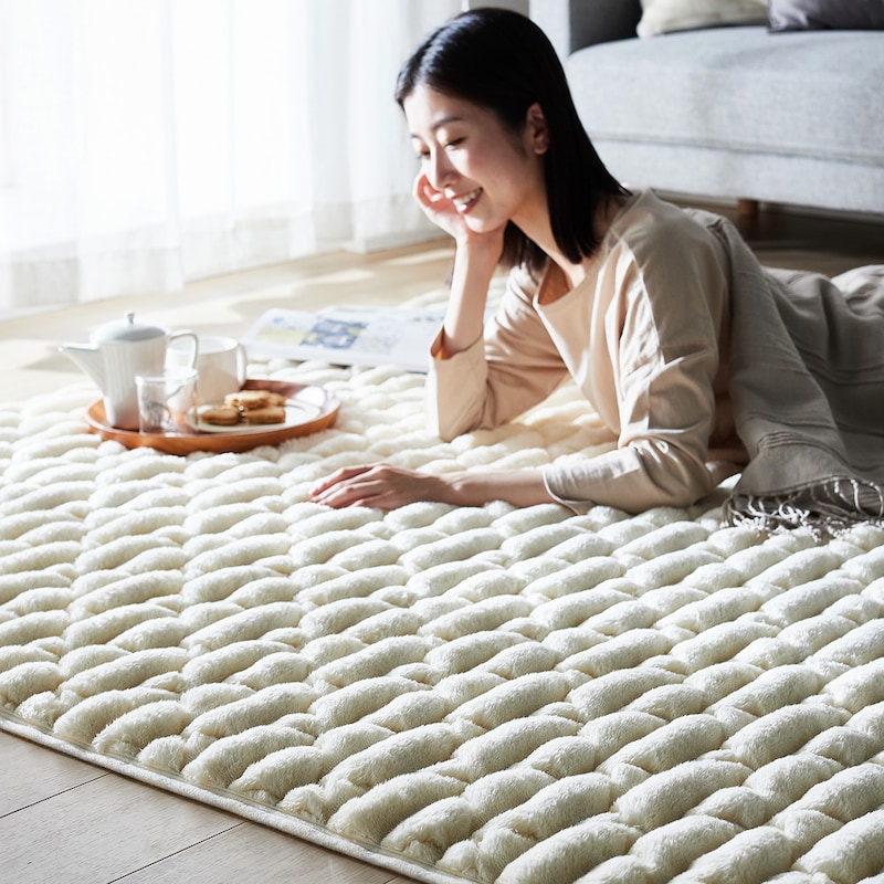 使っているカーペットの上に敷きました。ふわふわで、本当に気持ちが良いです。モカベージュを購入しましたが、色が上品で、落ち着いていて、それでいて暖かい感じで、見た目も満足しています。画像を見て、モコモコしていて掃除がしにくいのではないか、と心配していましたが、そんなこともなさそうです。