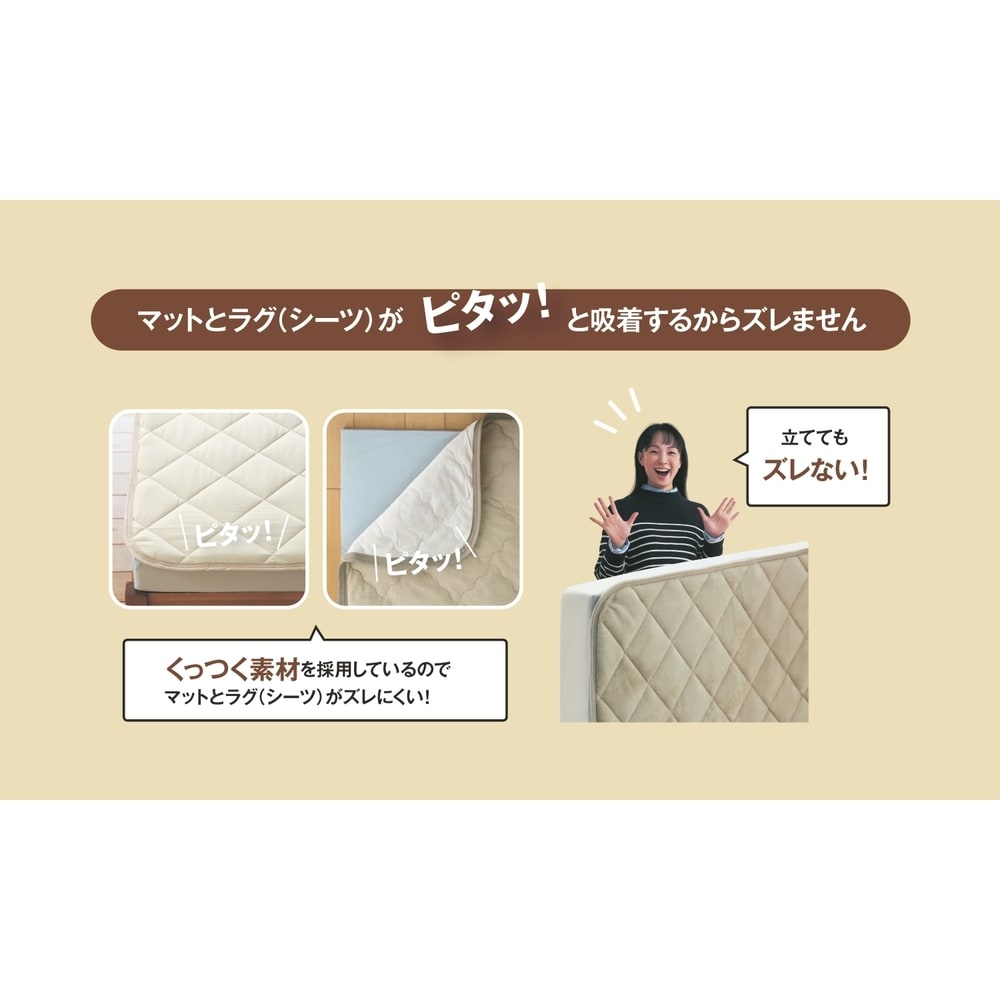 ・キルトラグの裏面とアンダーラグの表面にくっつく特殊な生地を使用。ずれる&よれるを解消します