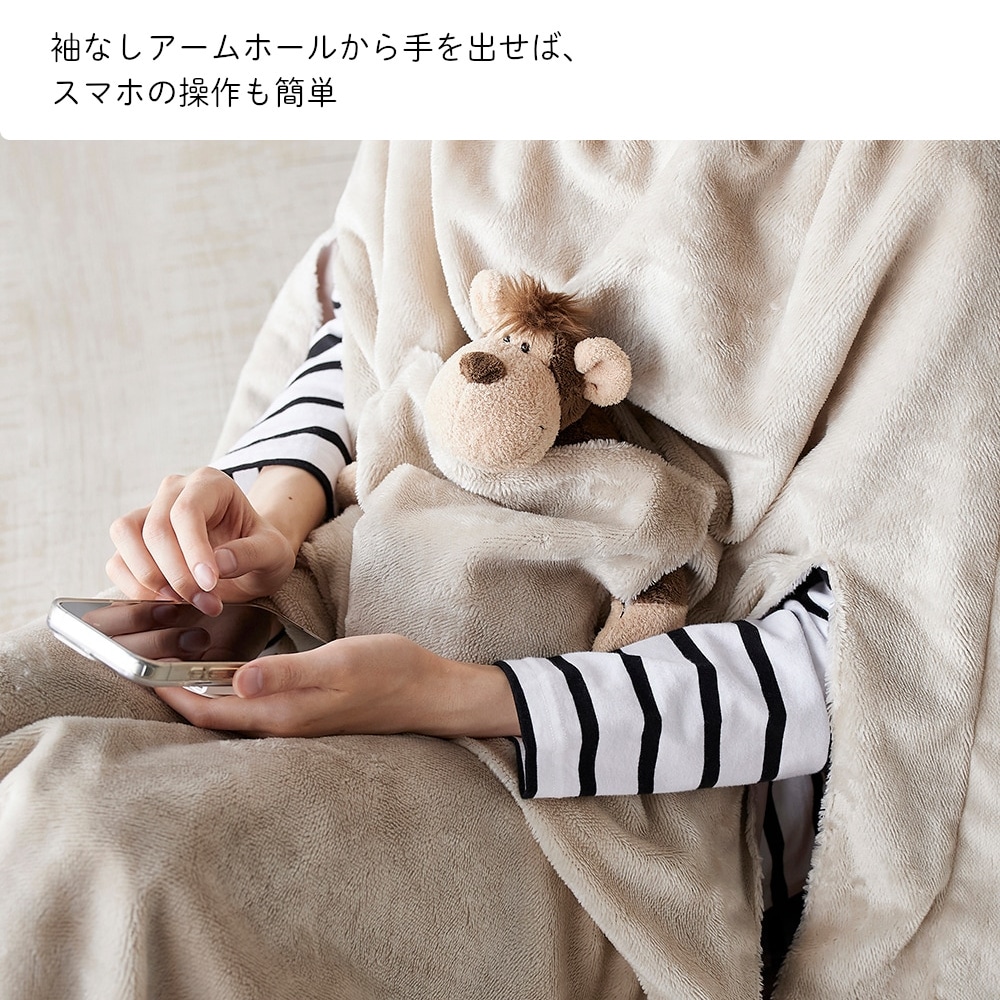 ・アームホールが付いているので、毛布を着たままでもスマホやタブレットを触りやすい