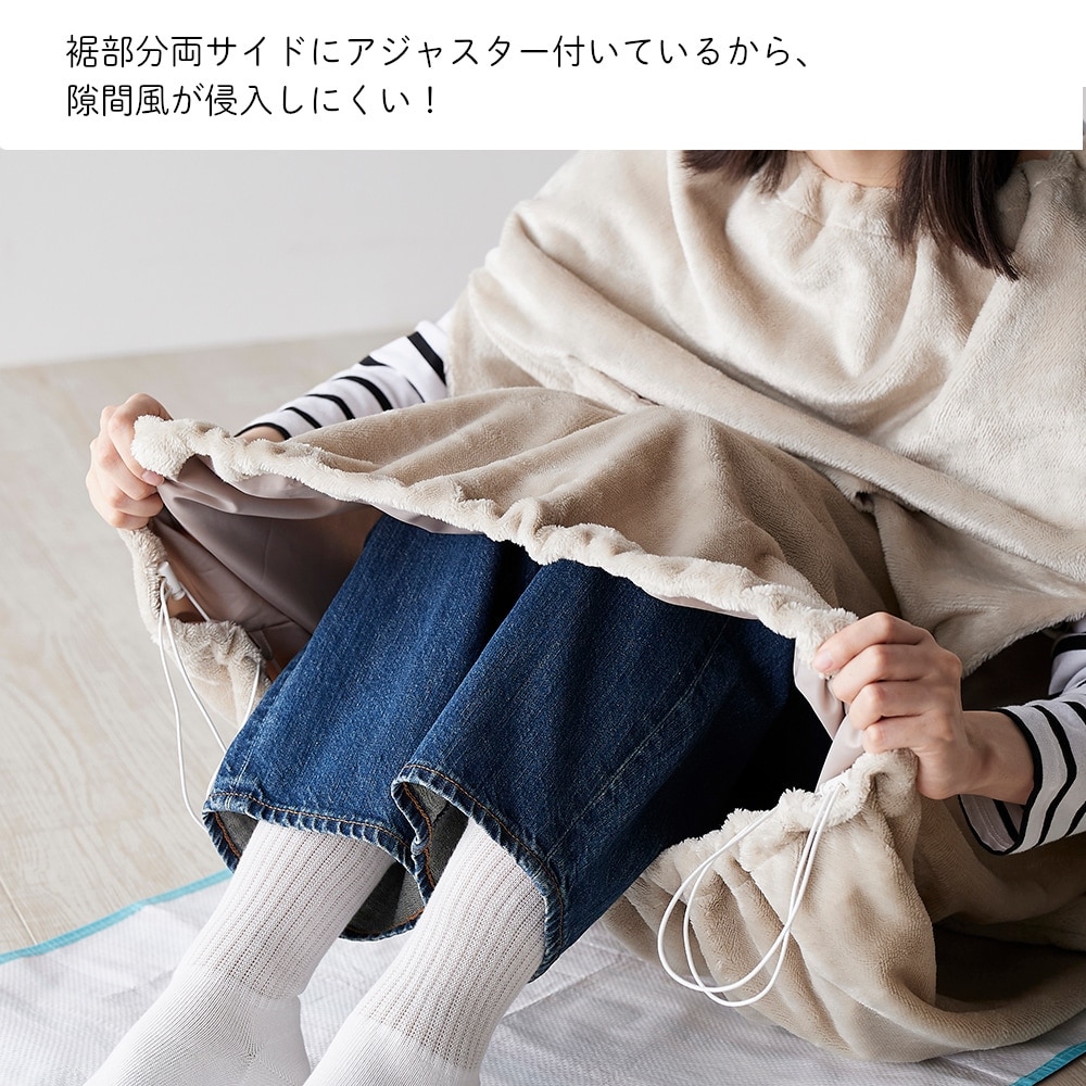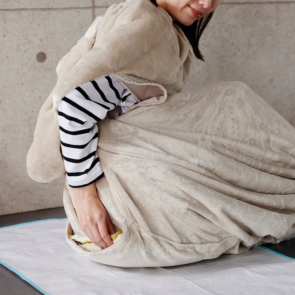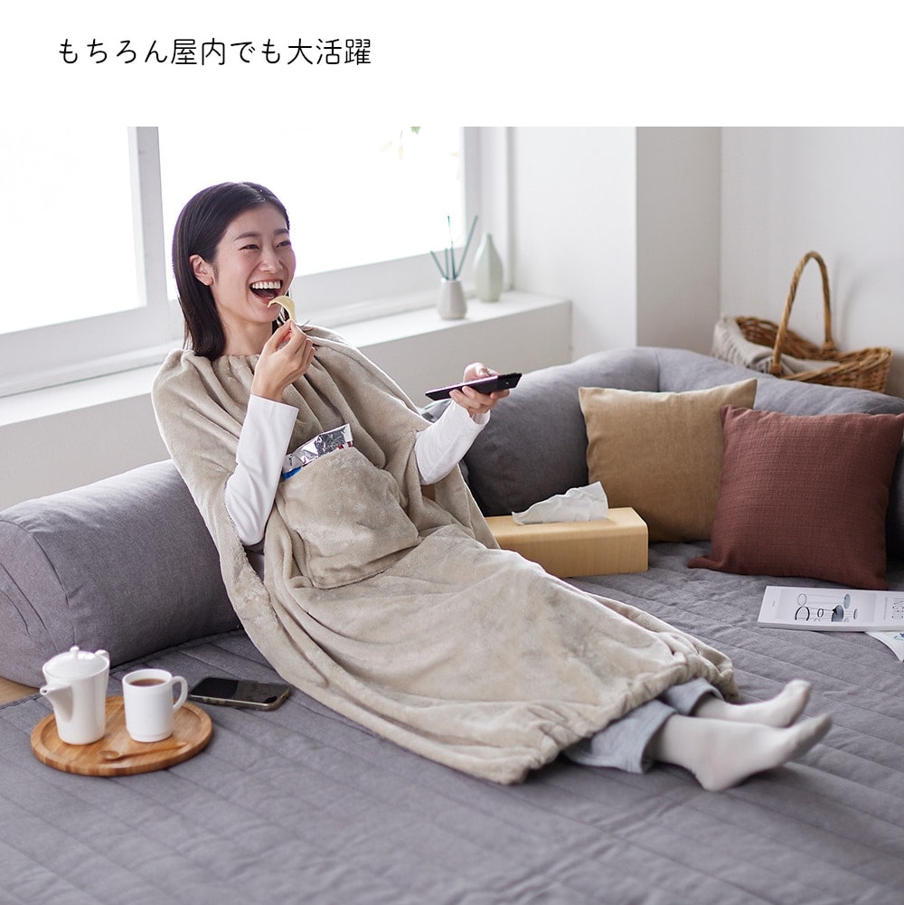 ・表面はマイクロファイバー、裏面は摩擦の少ないさらっとした素材を採用し、着るだけで毛布を羽織った時のように暖かく快適に過ごせる