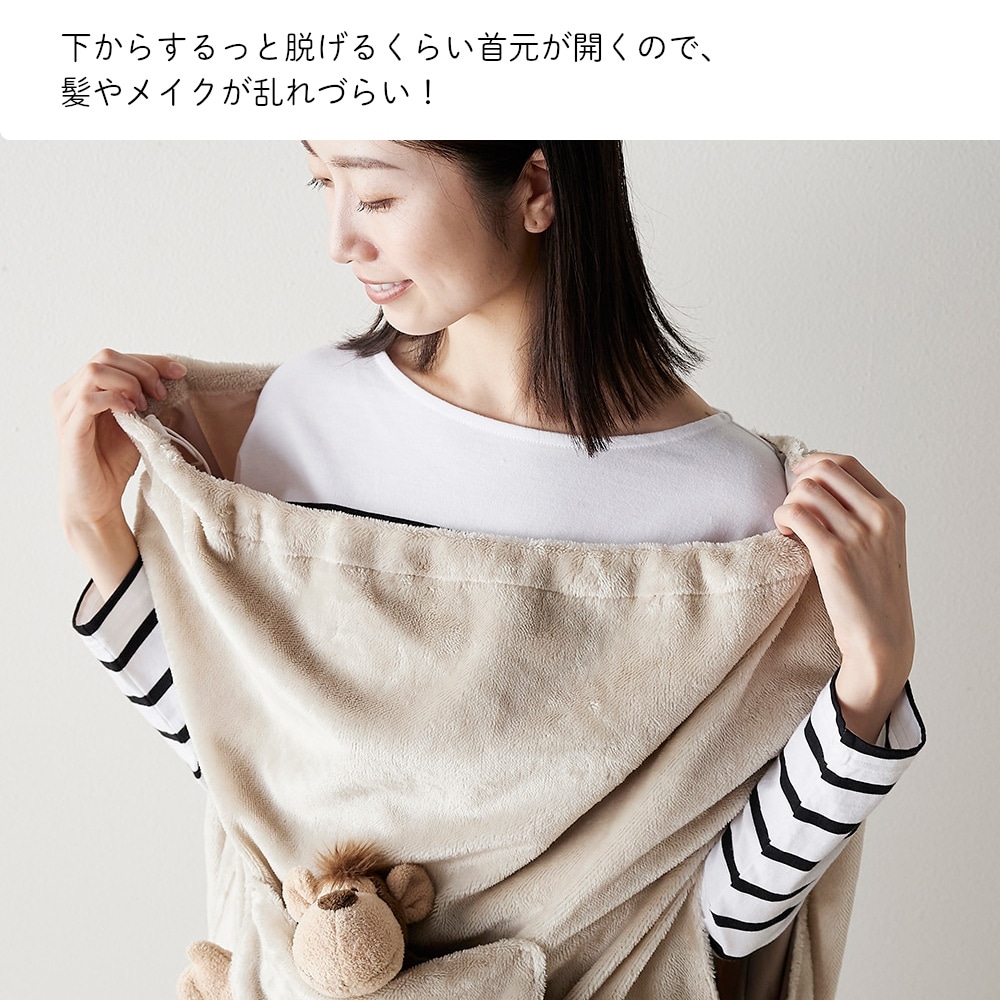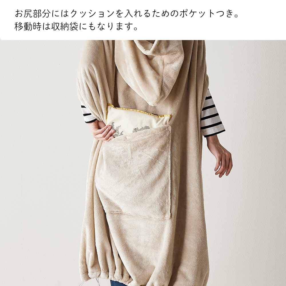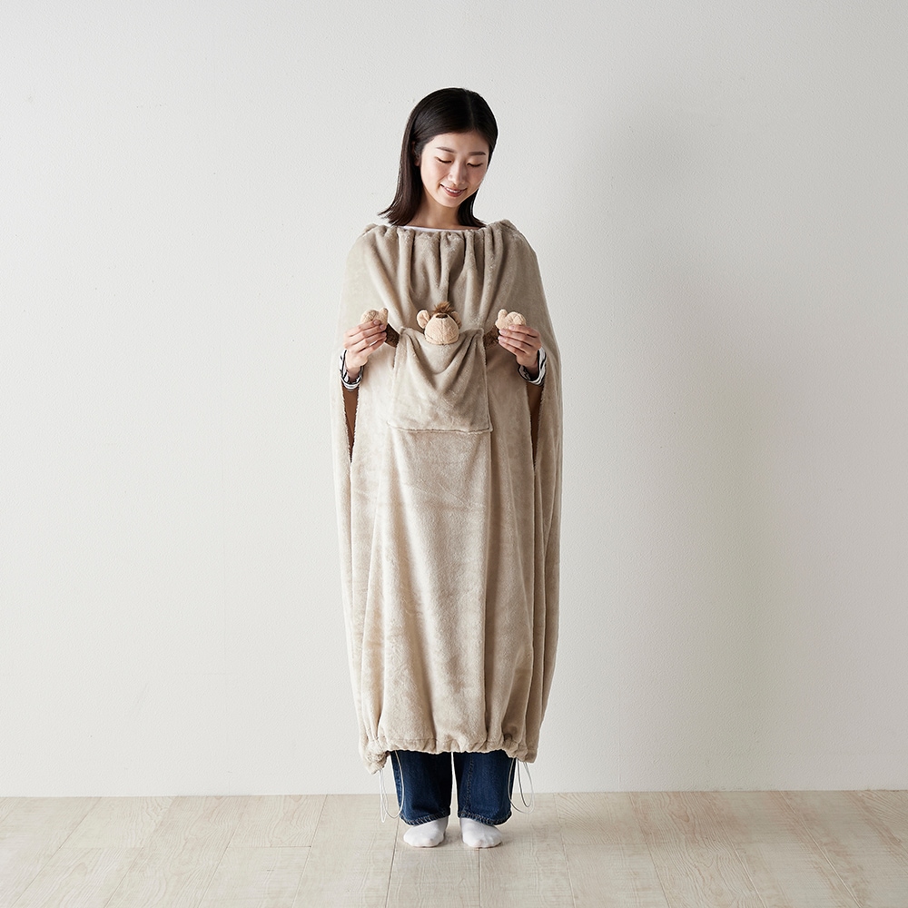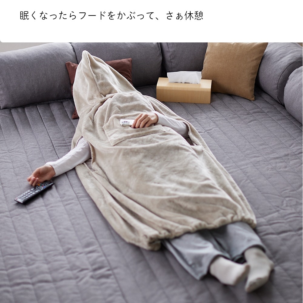 ・表面はマイクロファイバー、裏面は摩擦の少ないさらっとした素材を採用し、着るだけで毛布を羽織った時のように暖かく快適に過ごせる