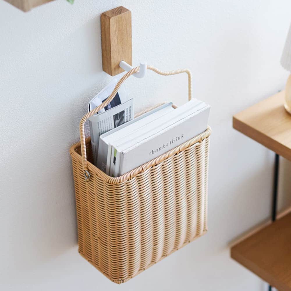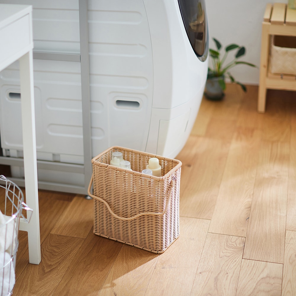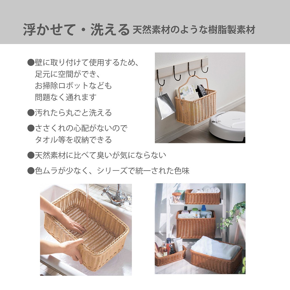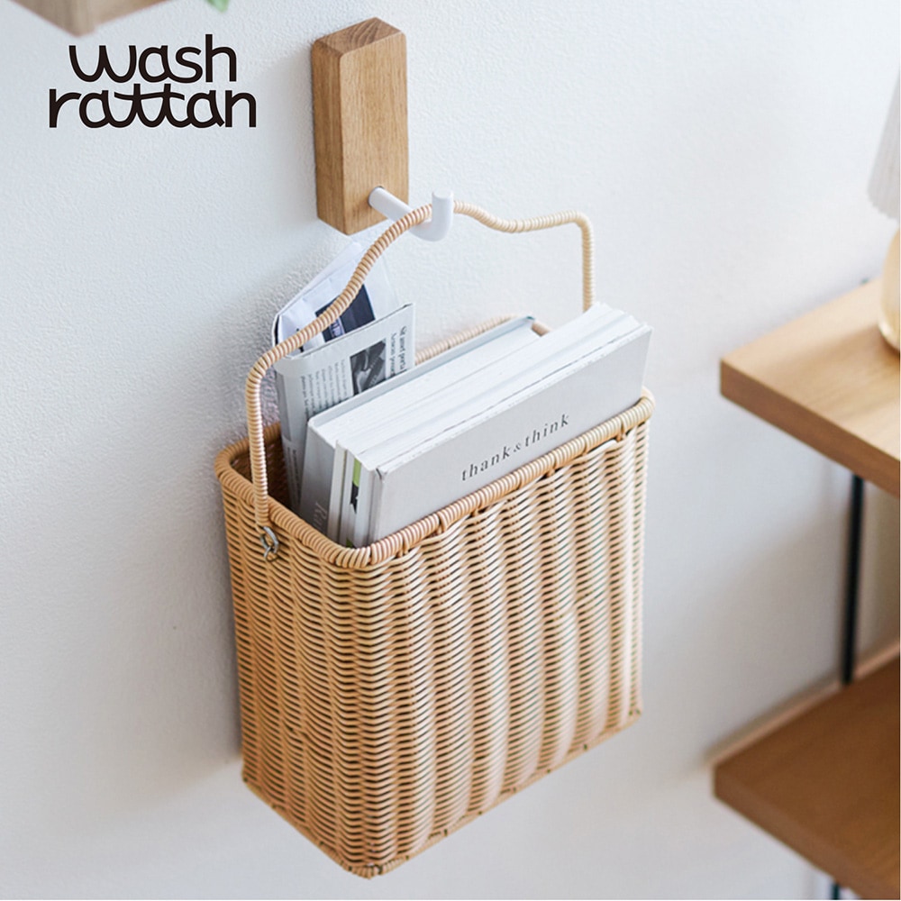 壁掛けできる洗えるラタン調収納バスケット「wash rattan」