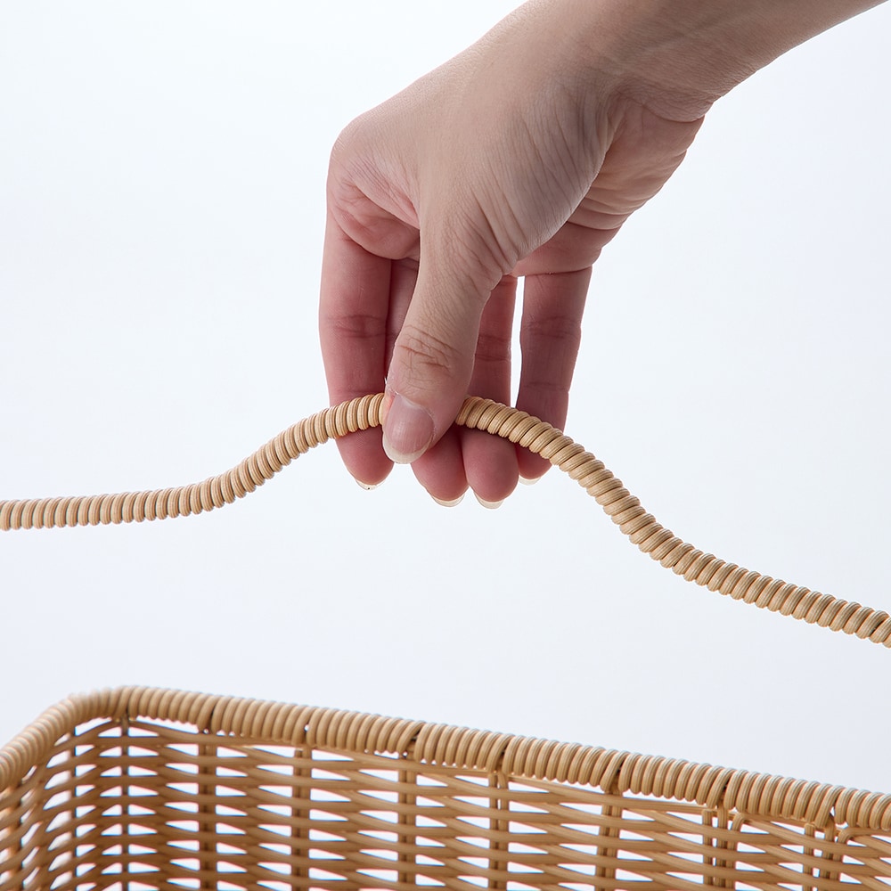 ●天然ラタンのような風合いを持つ、ささくれのない樹脂製素材です。