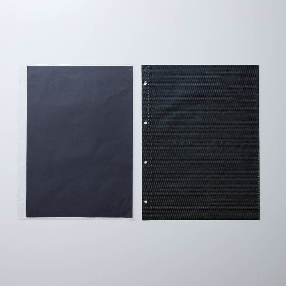 はがきサイズの写真が400枚分入るリフィル(右)と、フリーポケット(左)が4枚セットされています。