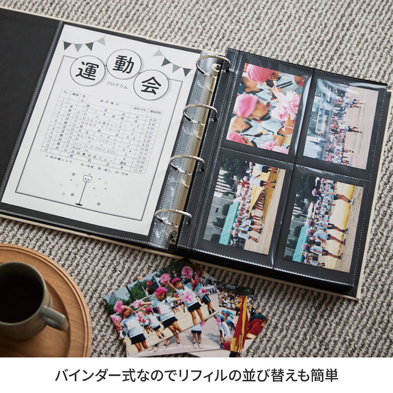 ・写真だけではない思い出をひとまとめにできるバインダー式のアルバム