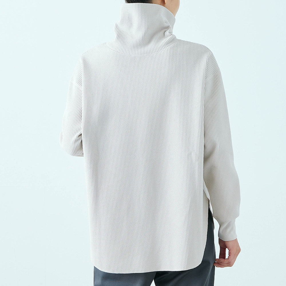細身の作りでしたので交換して大きいサイズをいただきましたが、もう少したっぷり着たい。というのも、生地が伸びないので腕周りも少し窮屈な印象です。でも温かさは満点です。