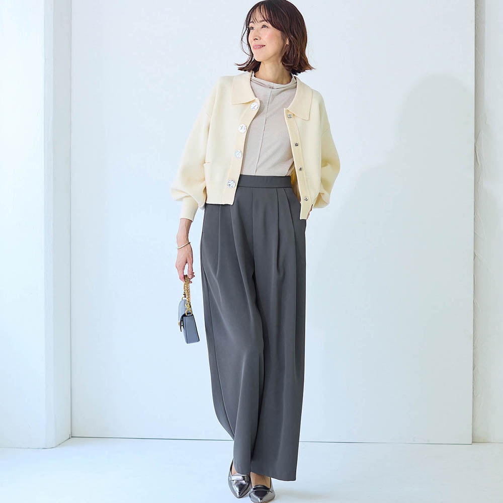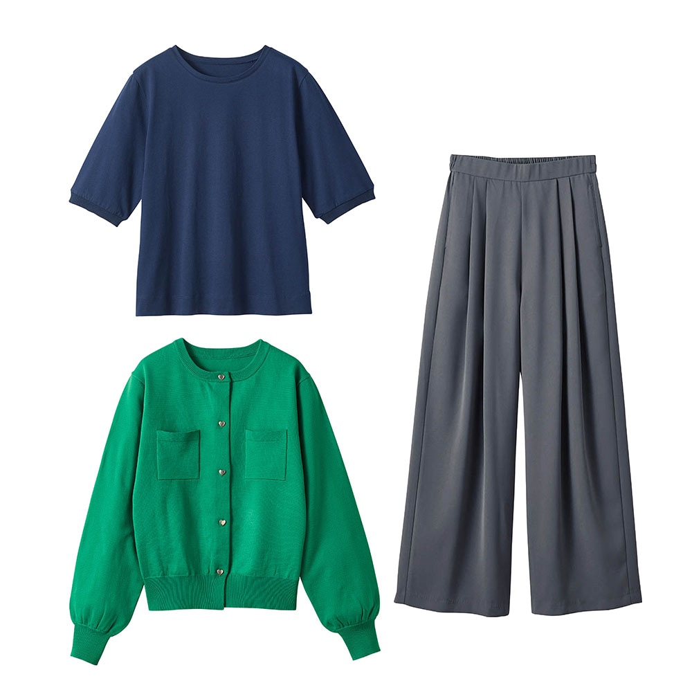 ワイドパンツ→これは一番当たりで、ビッグシルエットでも広がり過ぎず、万能食も便利そう。身長152cmの当方は丈だけ12cmほど詰めたところ、10cmでもよかったかも。
