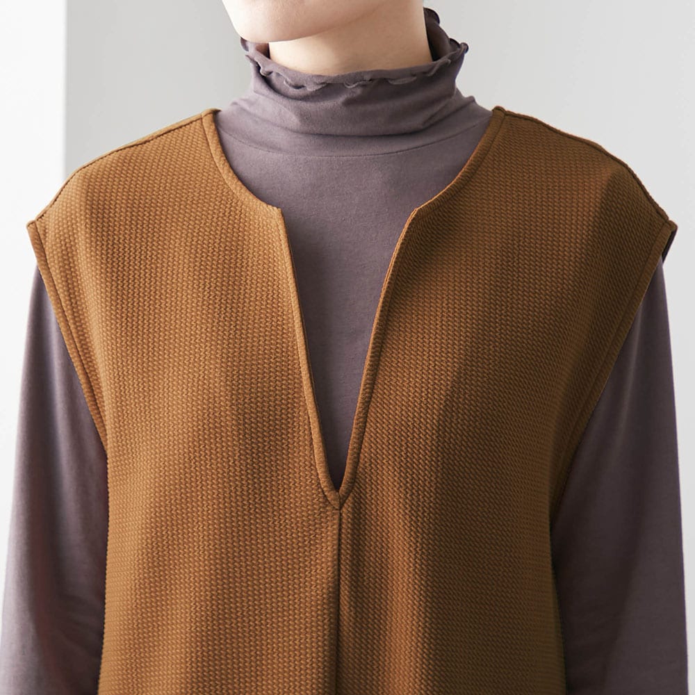 Vネック部分はサイトのキャメル色着用の上半身写真のように少し前に立つ感じで、私は気になりませんでした。洗濯後どうなるかまだわかりませんが。