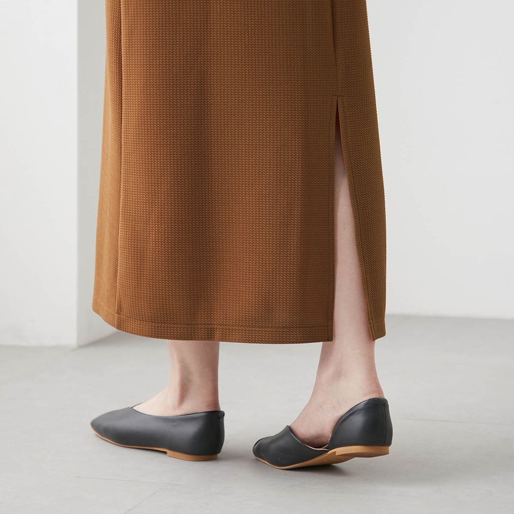 商品のご購入、ならびにレビューへのご投稿ありがとうございます。 フロントのⅤ開き部分がめくれやすく、ご満足いただける商品ではなかったとのこと、誠に申し訳ございません。 薄手のストレッチ性の高い素材を使用しておりますため、Ⅴ開き部分について多少の広がりが生じる場合がございます。上からカーディガンなど羽織っていただいたり、トップスを重ねてご着用いただくことで目立ちにくくなりますので、お試しいただけますと幸いです。 今後もお客様により満足度の高い商品をお届けできるよう努力をしてまいります。 貴重なご意見ありがとうございました。