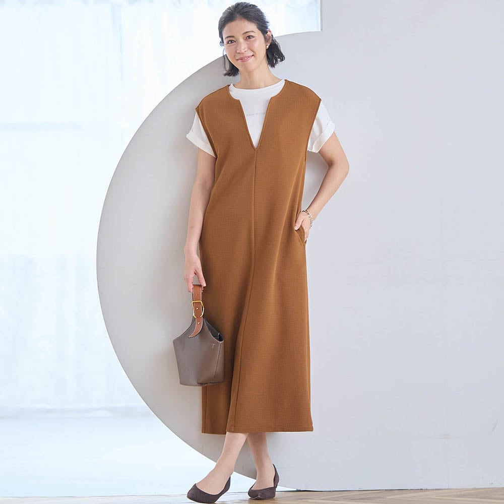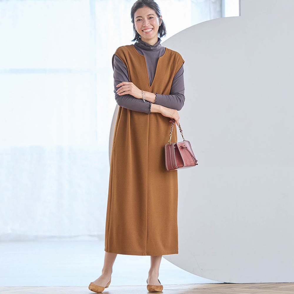 程よいゆとりでストンと落ちるIラインで期待通りのシルエット。上半身華奢なのですが肩を覆うデザインなのでカバーされる感じです。 生地は思ったよりだいぶ薄手で春夏向きの気もしますが、暖冬傾向だしインナー次第で極寒の日や真冬以外は大丈夫かも。軽くてさらっとしているので着心地はいいです。 Vネック部分はサイトのキャメル色着用の上半身写真のように少し前に立つ感じで、私は気になりませんでした。洗濯後どうなるかまだわかりませんが。