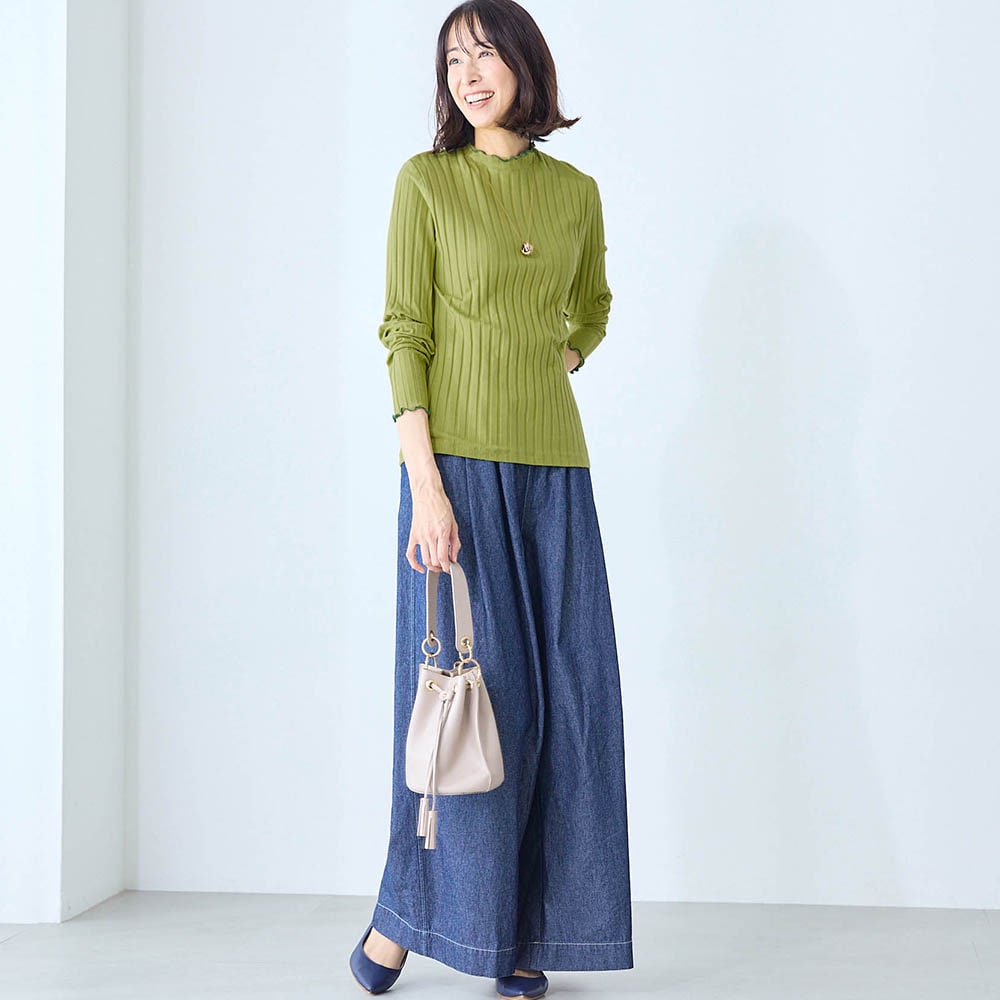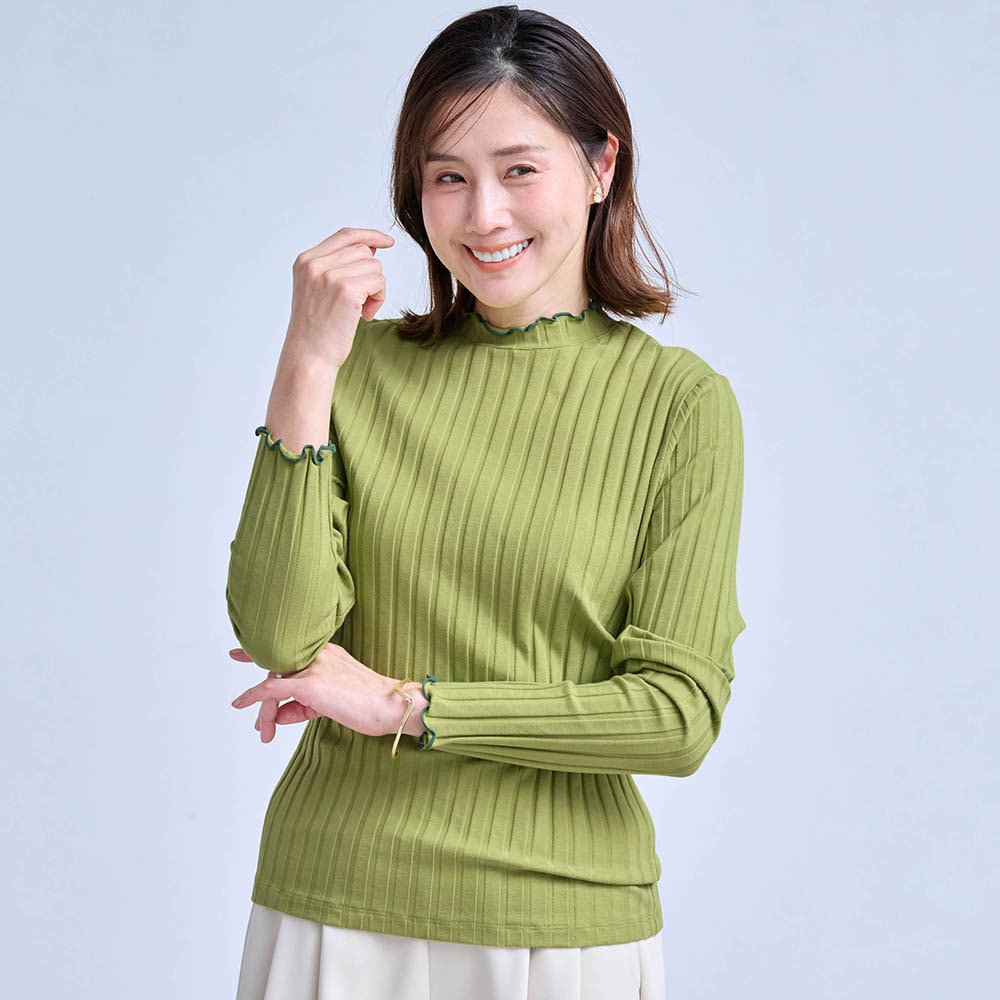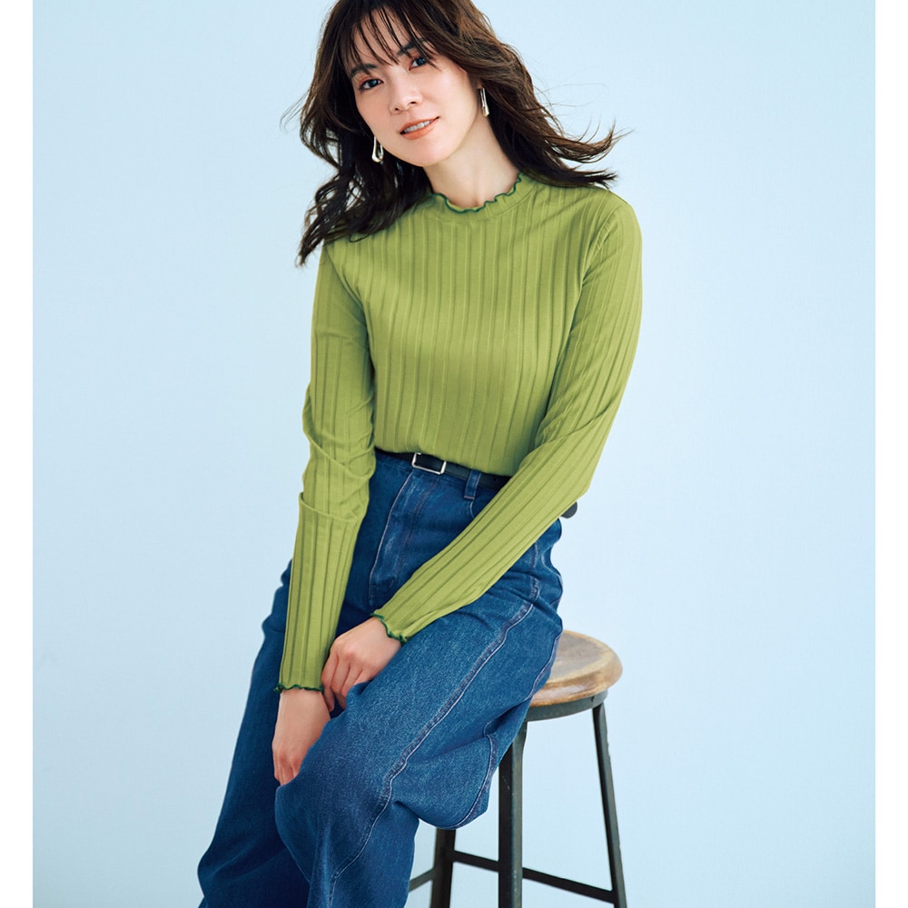 リプなのに肉感を拾わない、シンプルなのにおしゃれでとても良かったので他の色も欲しくなった。ブラックとオフホワイトを既に購入しているのですがやや欠点はブラックは他の衣服を合わせて着用した時糸ボコリが少し移るように思うかも‥。