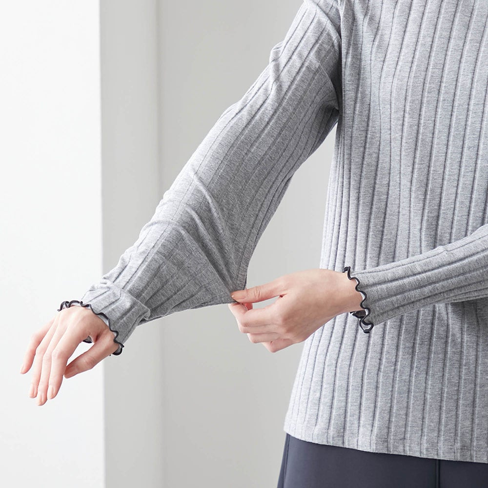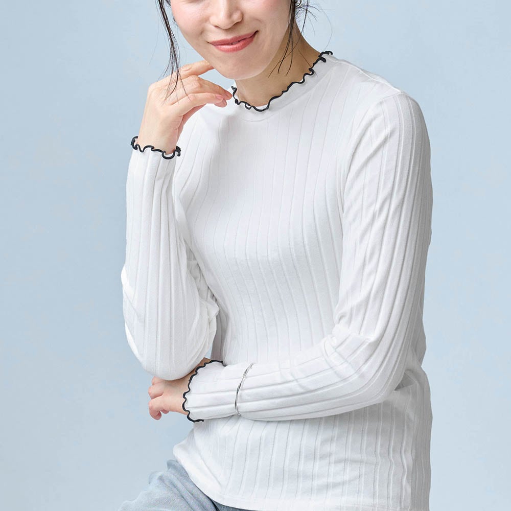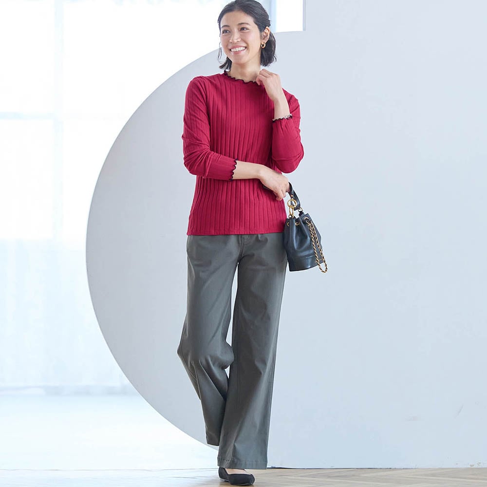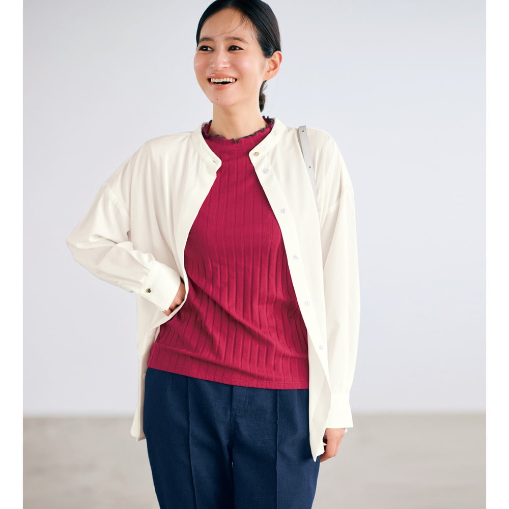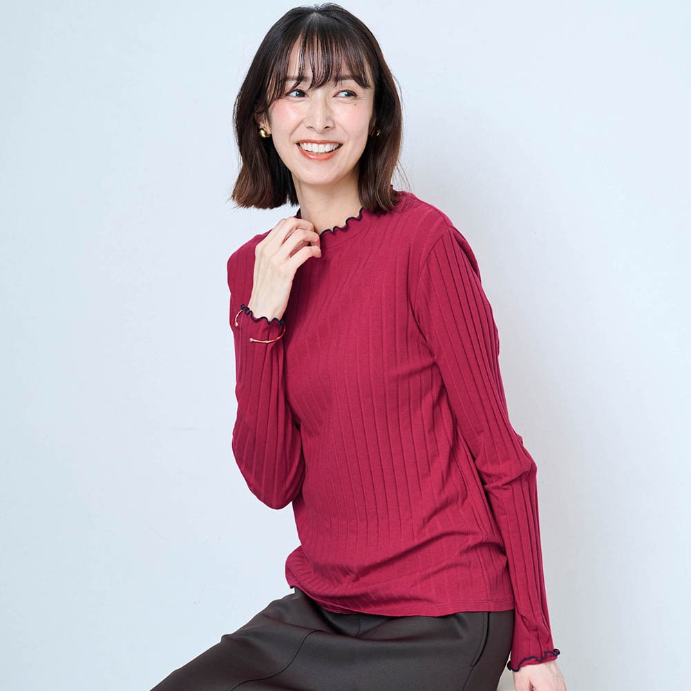 かわいいレッド、襟元のブラックフリルがとても気に入りました。着心地も楽です。色違いで欲しいです。洗濯すると、許容範囲ですが少しよれた感じになりました。(私の洗濯の仕方が悪いのかも)