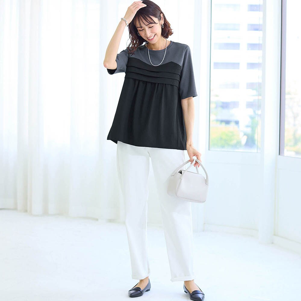 トップスのデザインの問題だと思うのですが、肩幅がある私が着たところ、だいぶ大柄なヌリカベぽくなってしまいました。