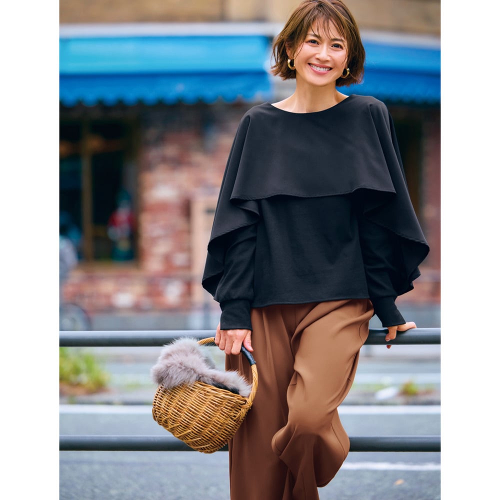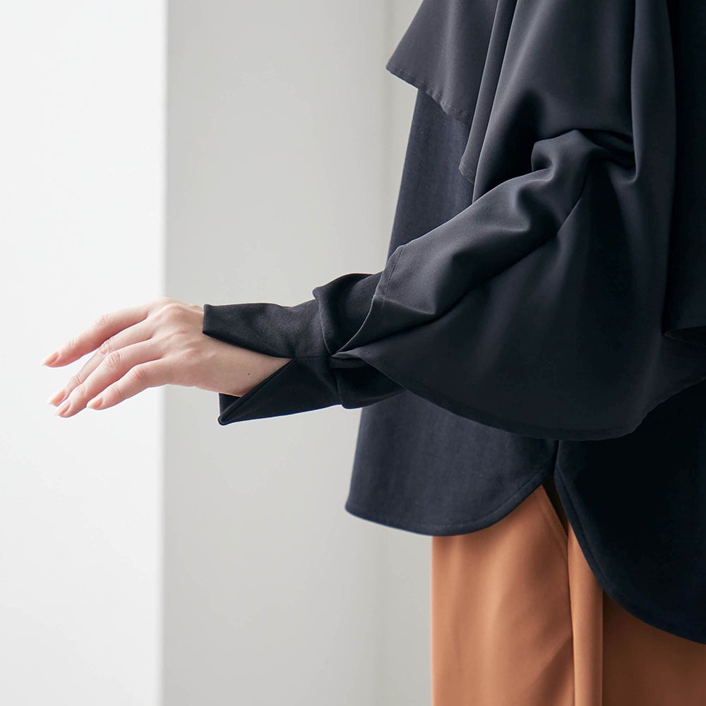 ・動きやすさときちんと感を兼ね備えたドラマティックなTブラウス