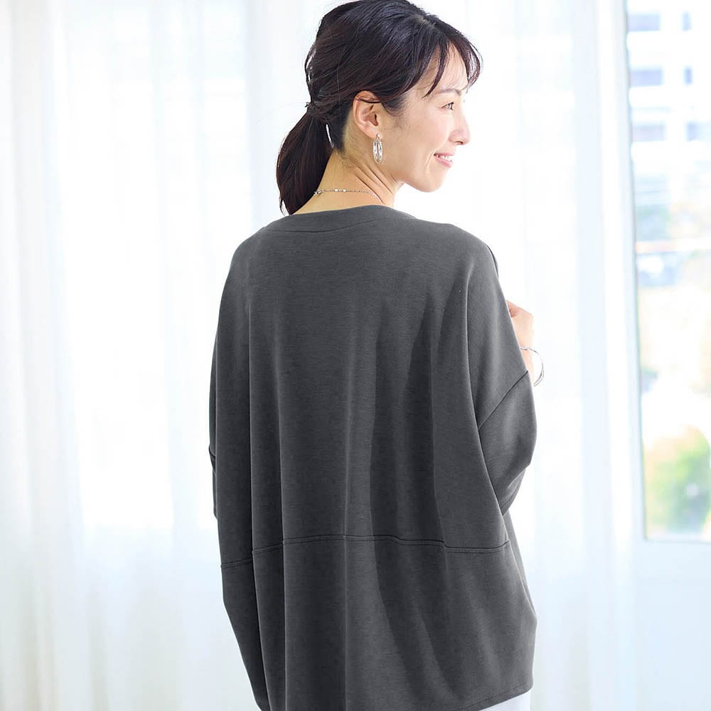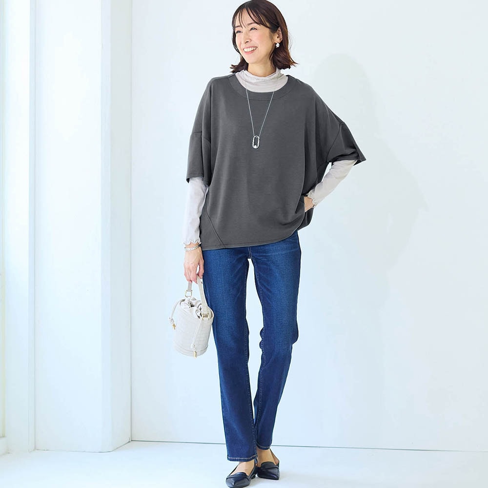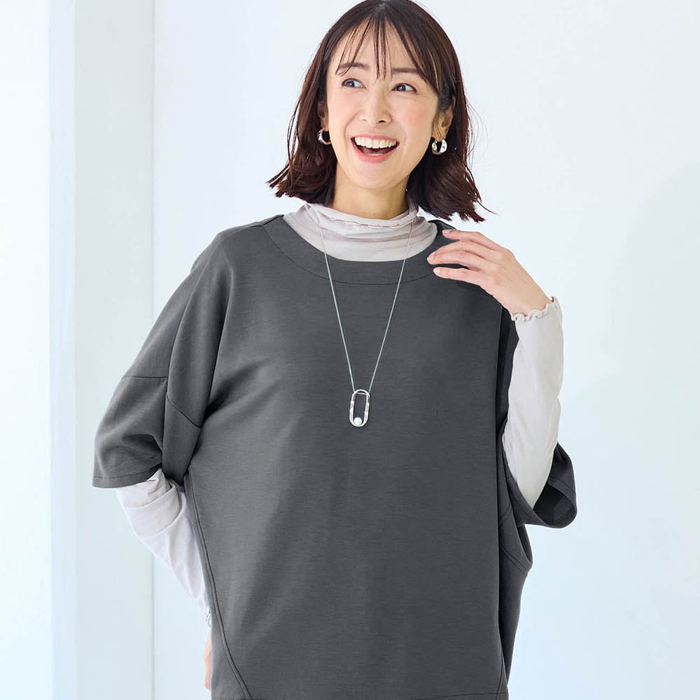 • ドロップショルダーとゆったりシルエットで気になる体型をカバー