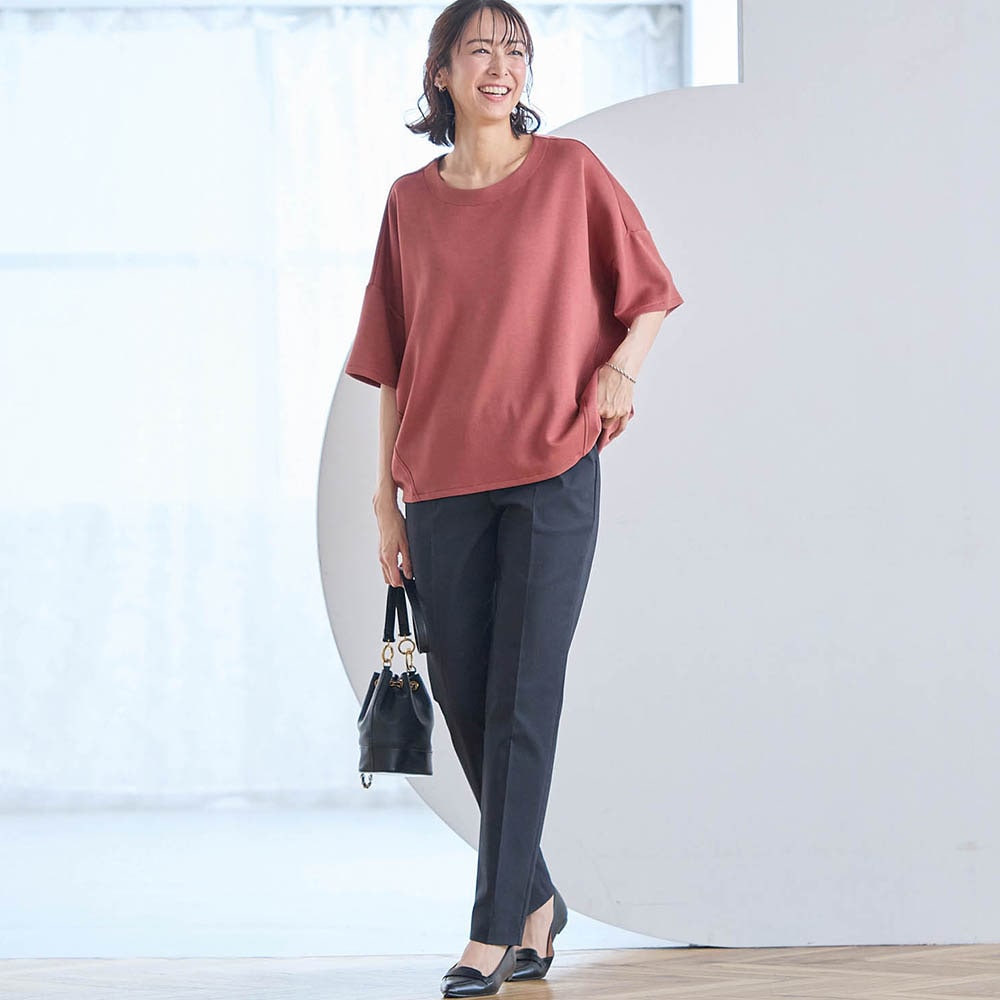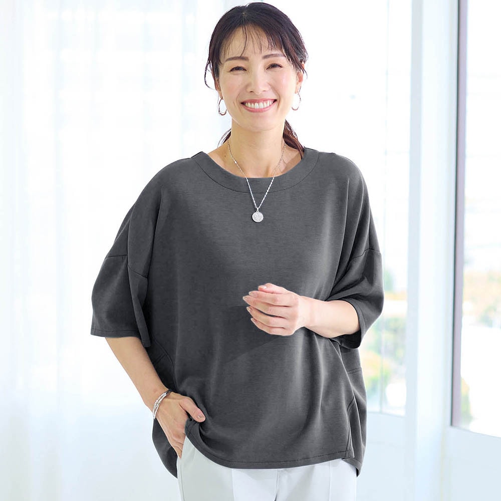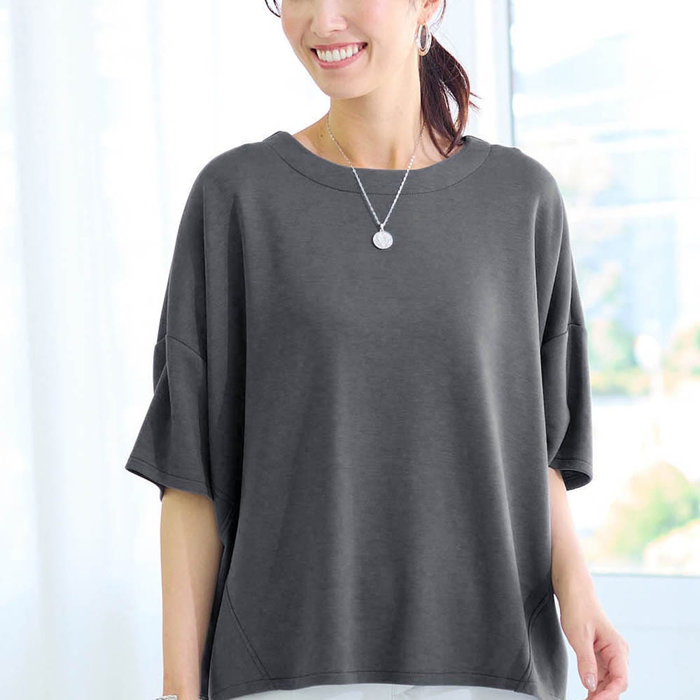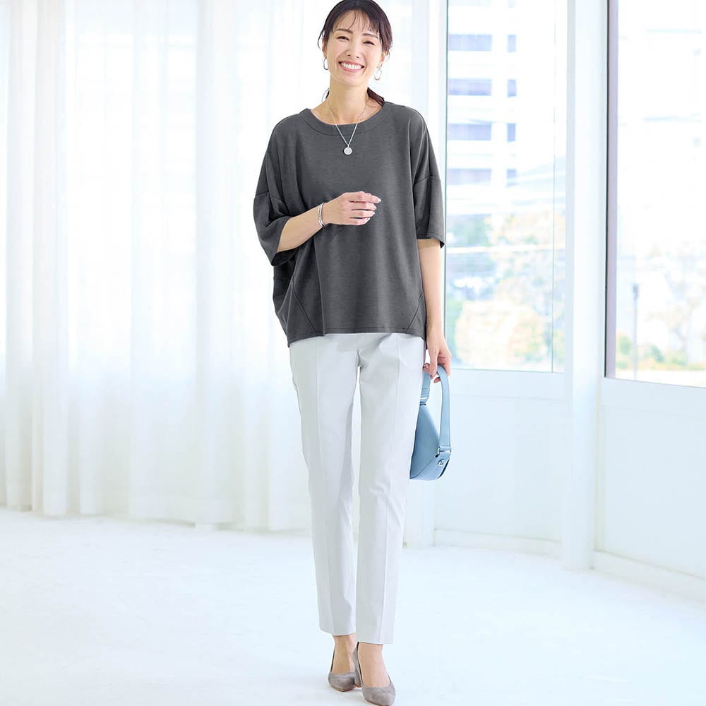 • ドロップショルダーとゆったりシルエットで気になる体型をカバー