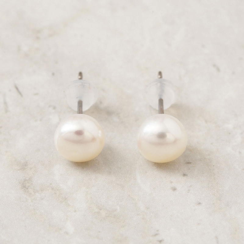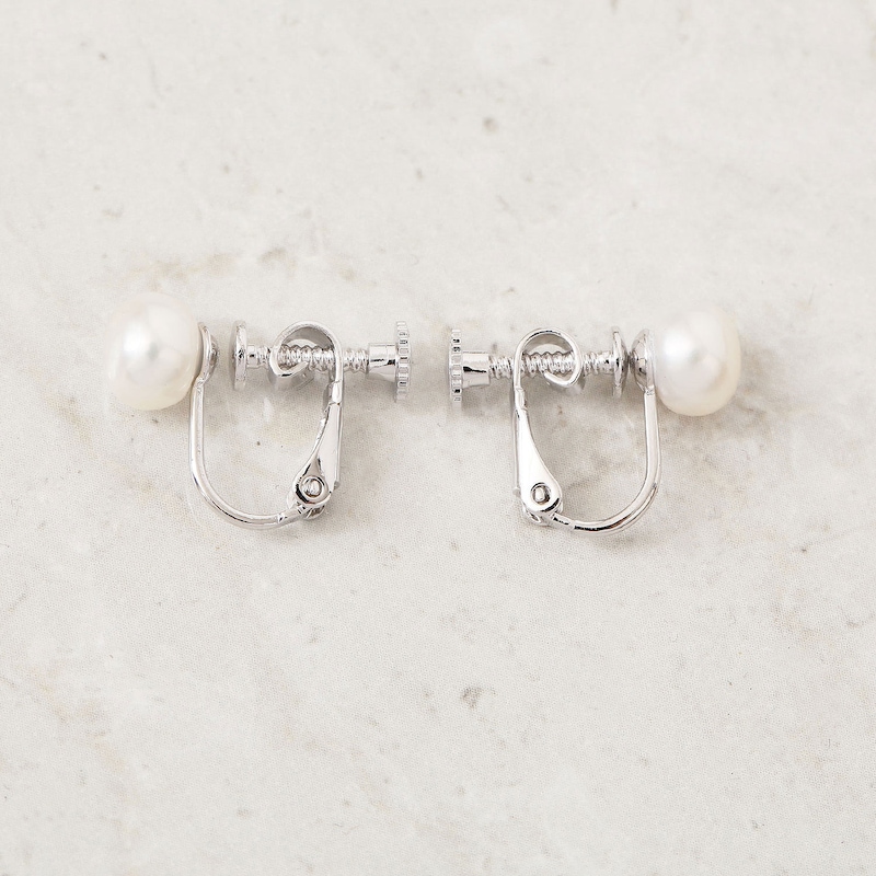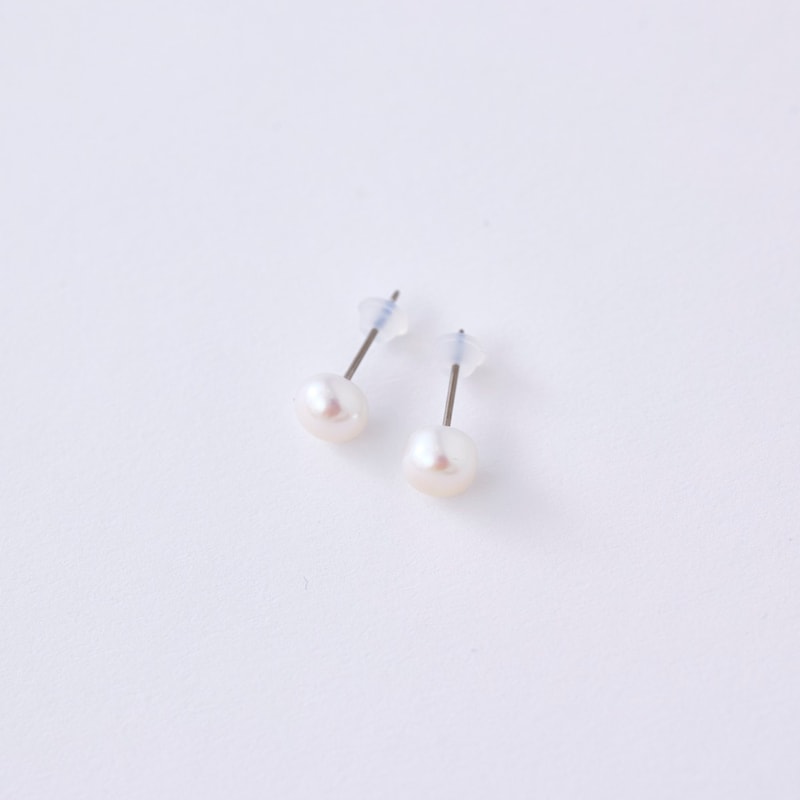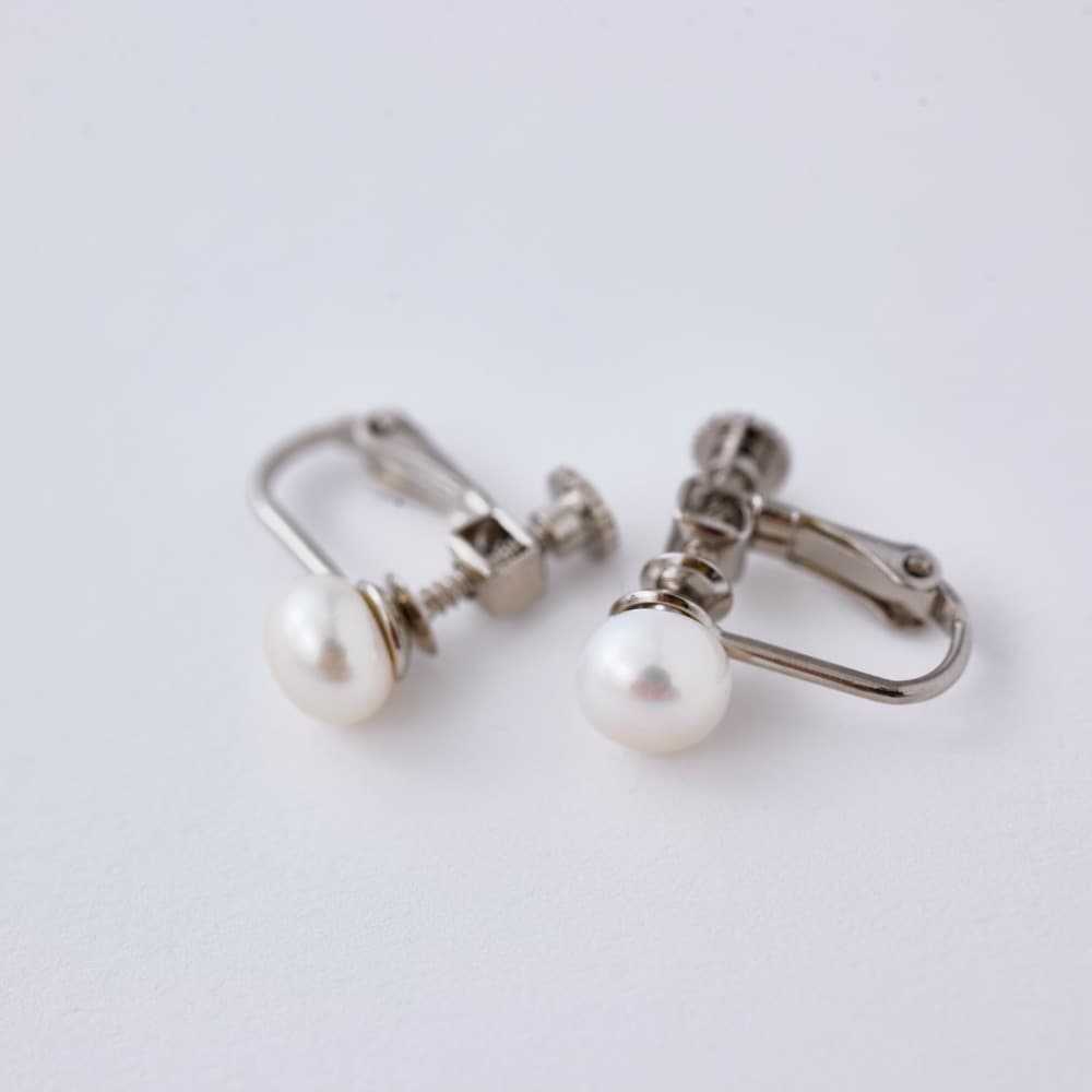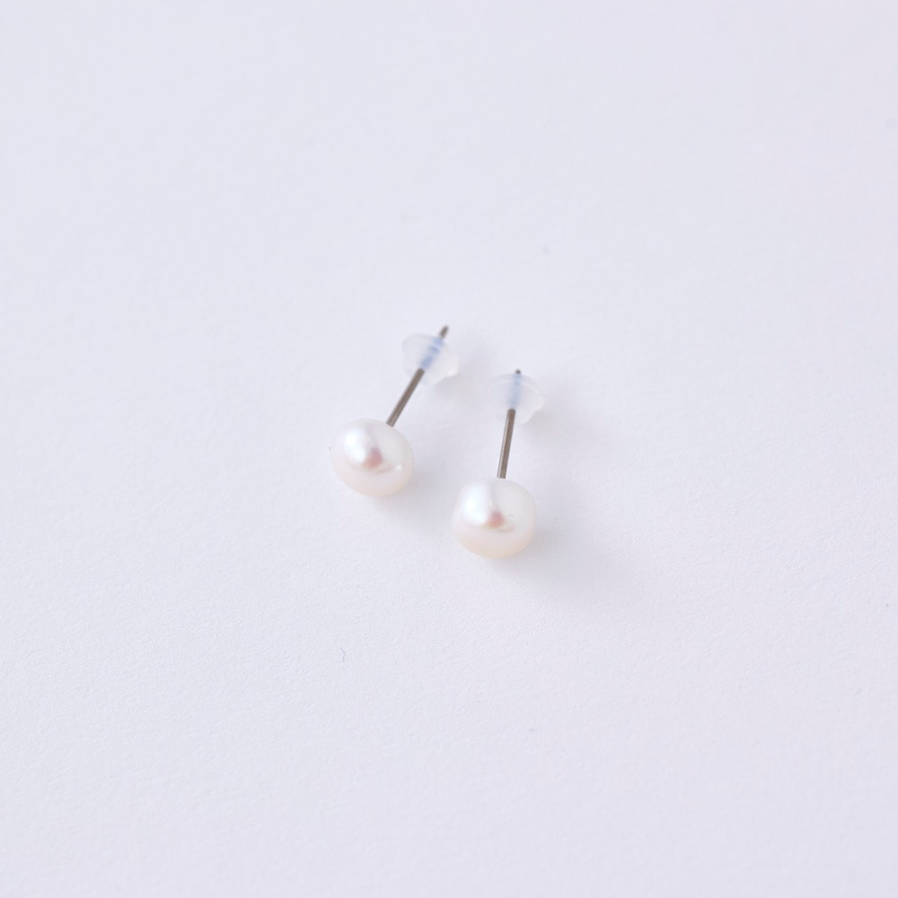 ●素材/(イヤリング)淡水パール、真ちゅうに銀色メッキ、(ピアス)淡水パール、真ちゅうに銀色メッキ、チタン