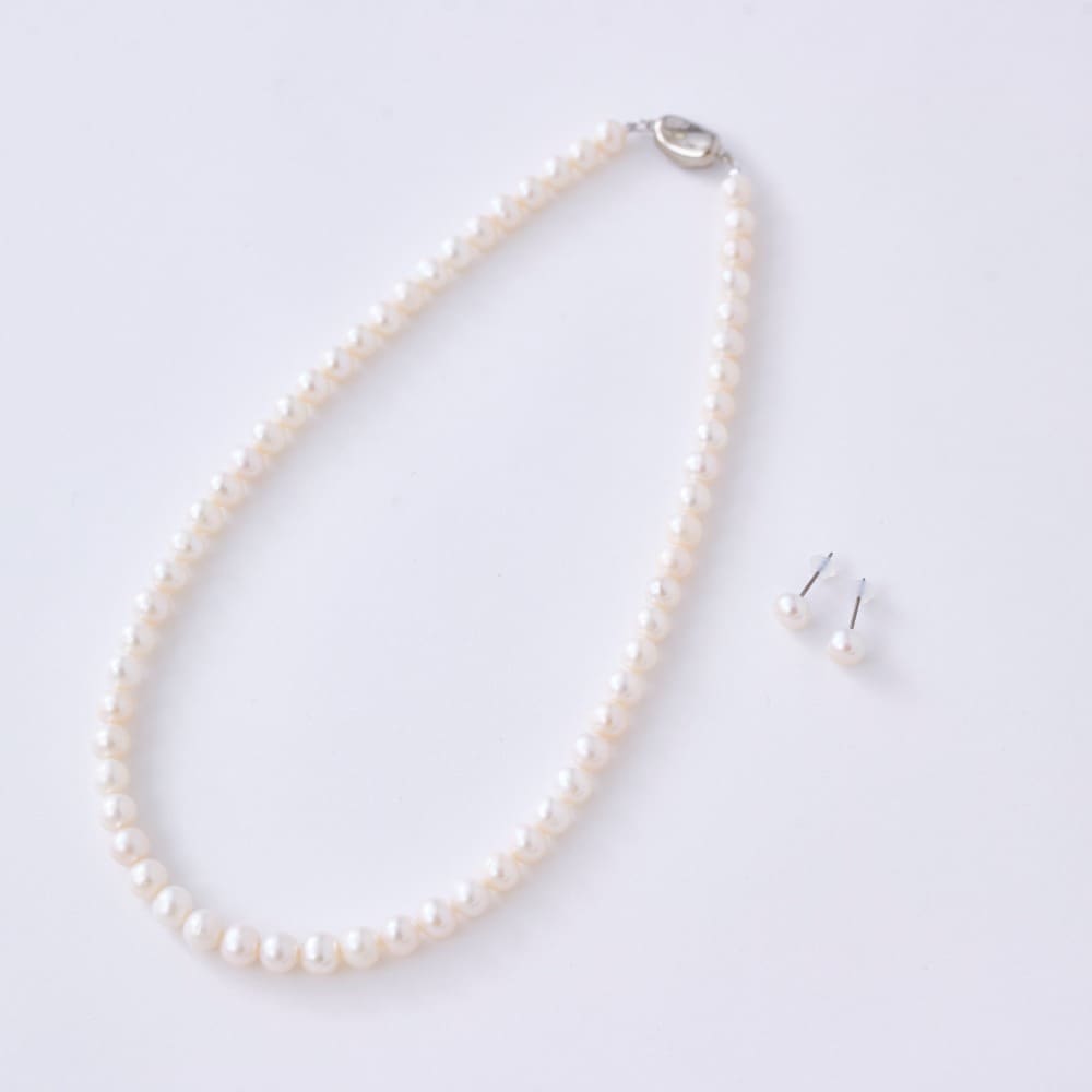 淡水パールネックレス・イヤリング(ピアス)セット[日本製]