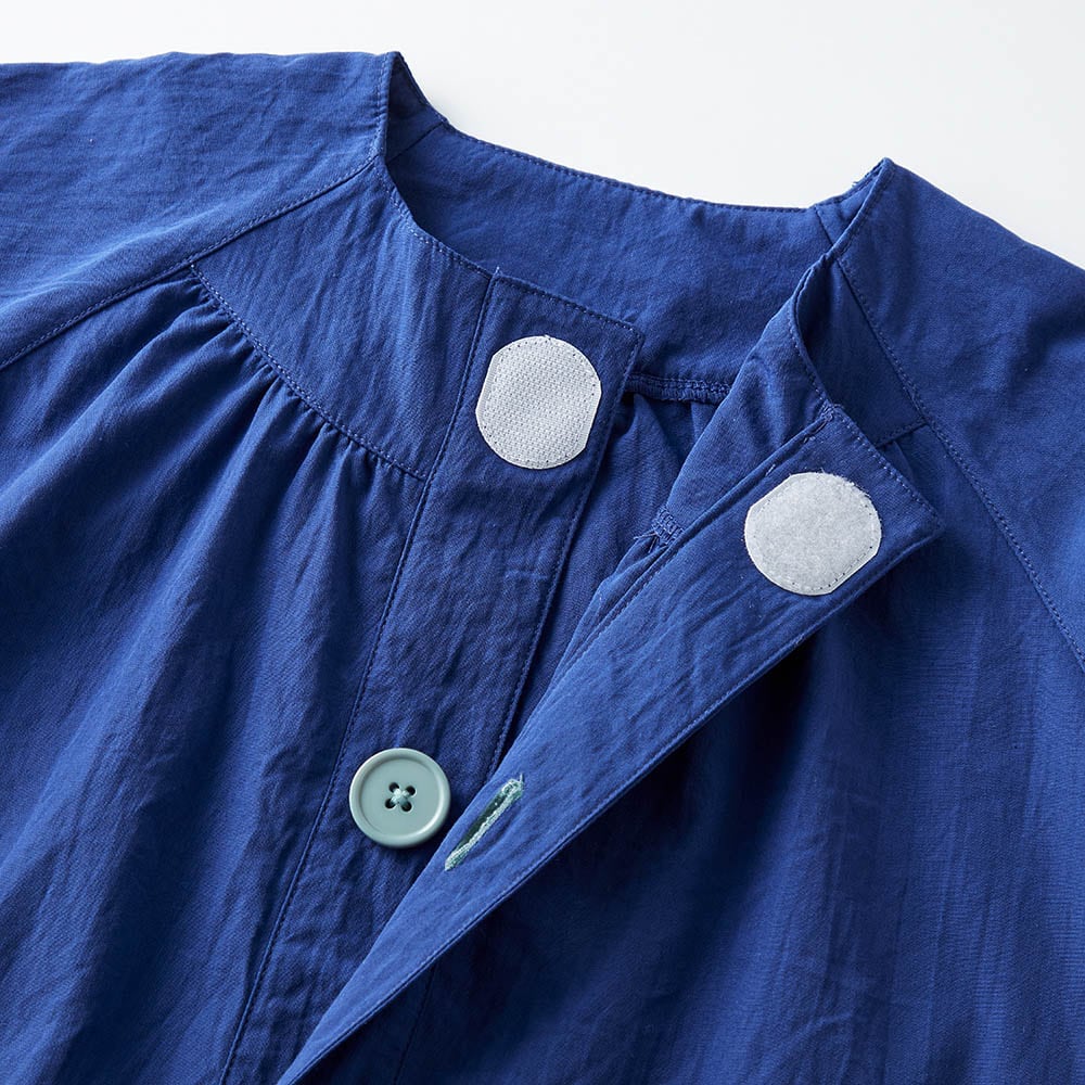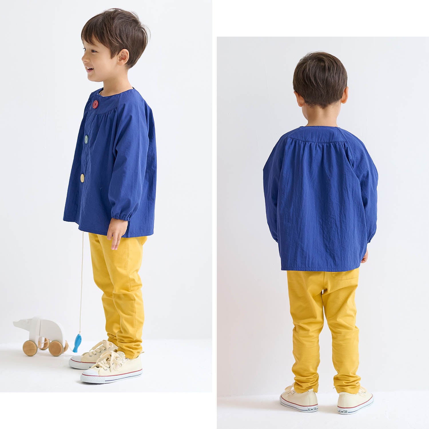 5歳ですがまだ食べこぼしが多く、家の食事用にスモックを使用しています。幼稚園のスモックと形が似ており、抵抗なく着てくれて助かっています。冬は厚着するため、大きめのスモックだときつくならずに着れています!
