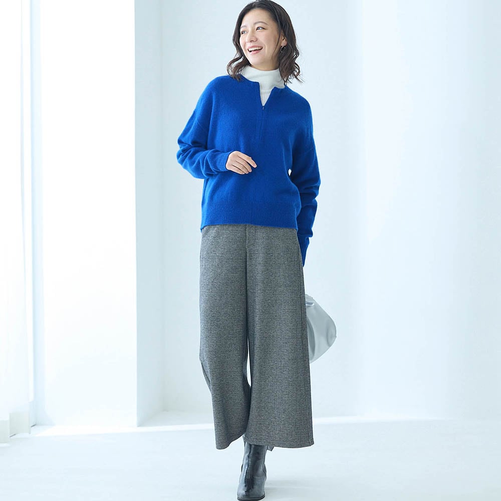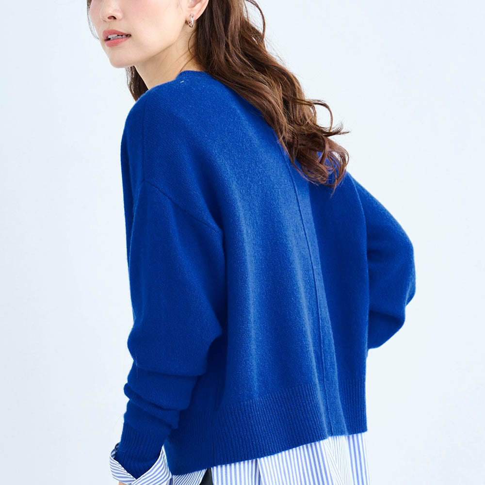 目の覚めるような青色カラーが気になってました。値下げを待っていたら売り切れになってしまったことが2度あり、まめにチェックしてようやく買えました。薄手のセーターですが、下に暖かいインナーを着れば大丈夫。とにかくカラーが気に入ってます。