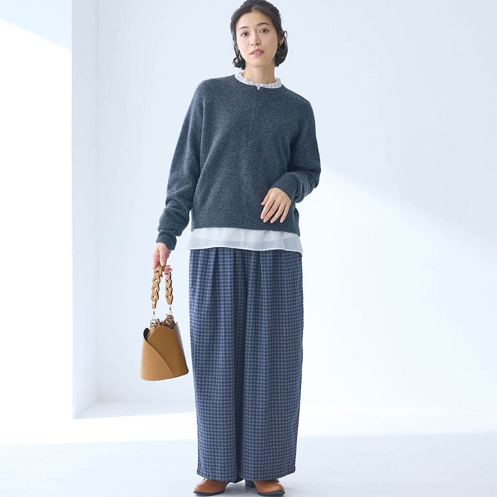 襟つきのシャツを着ればスマートな感じ、フリルのブラウスを着ればこれまた表情がかわります。